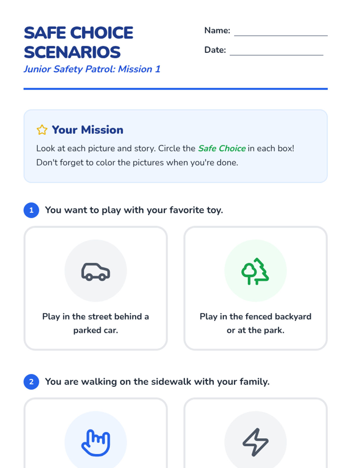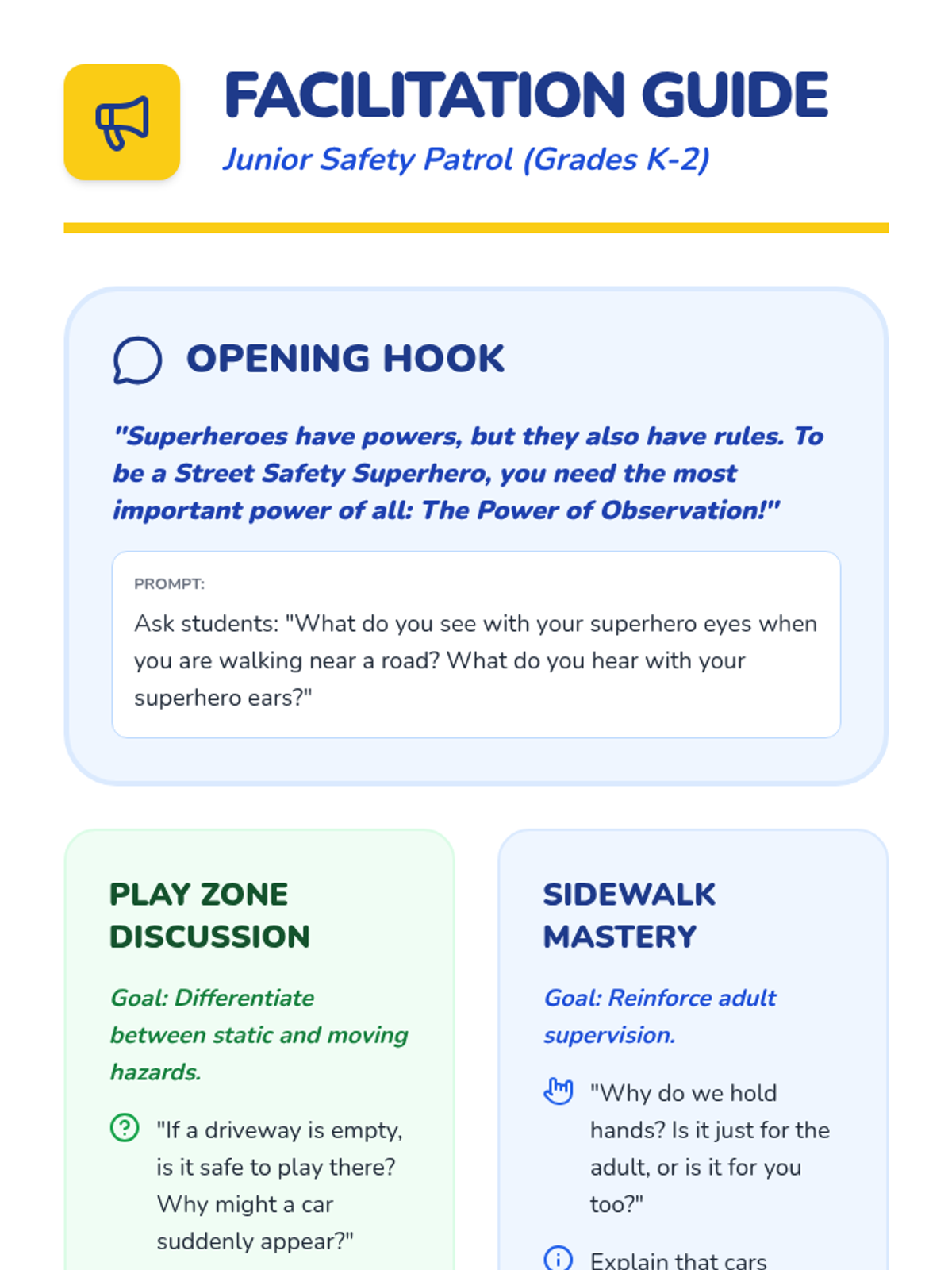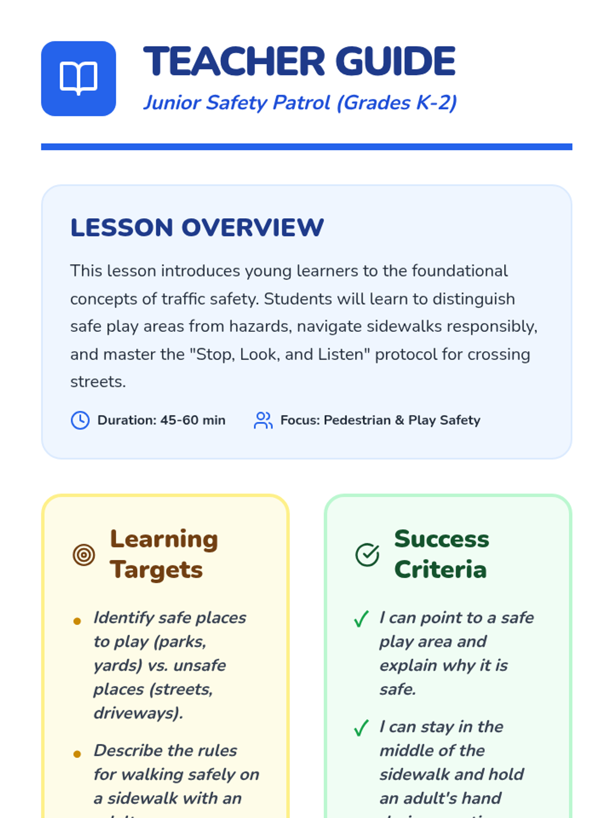 An introduction to basic pedestrian safety and safe play for students in grades K-2, emphasizing sidewalk rules and supervised walking.