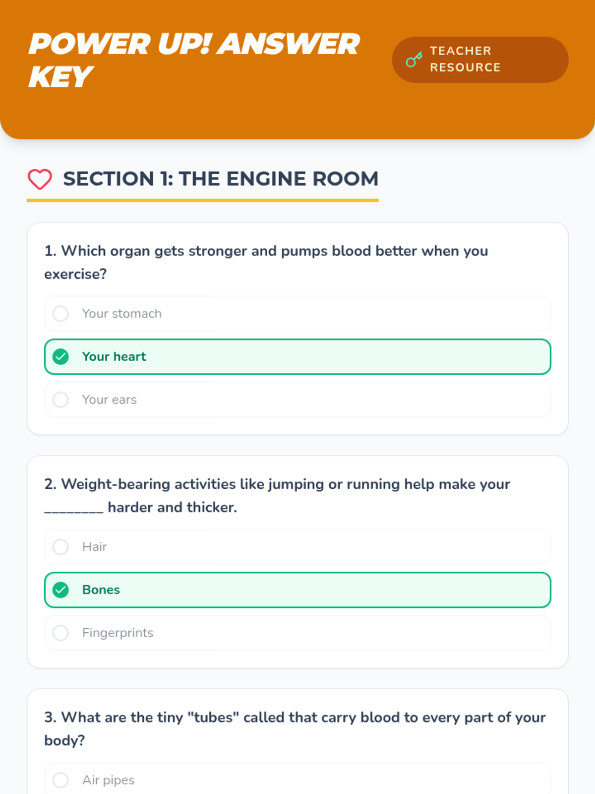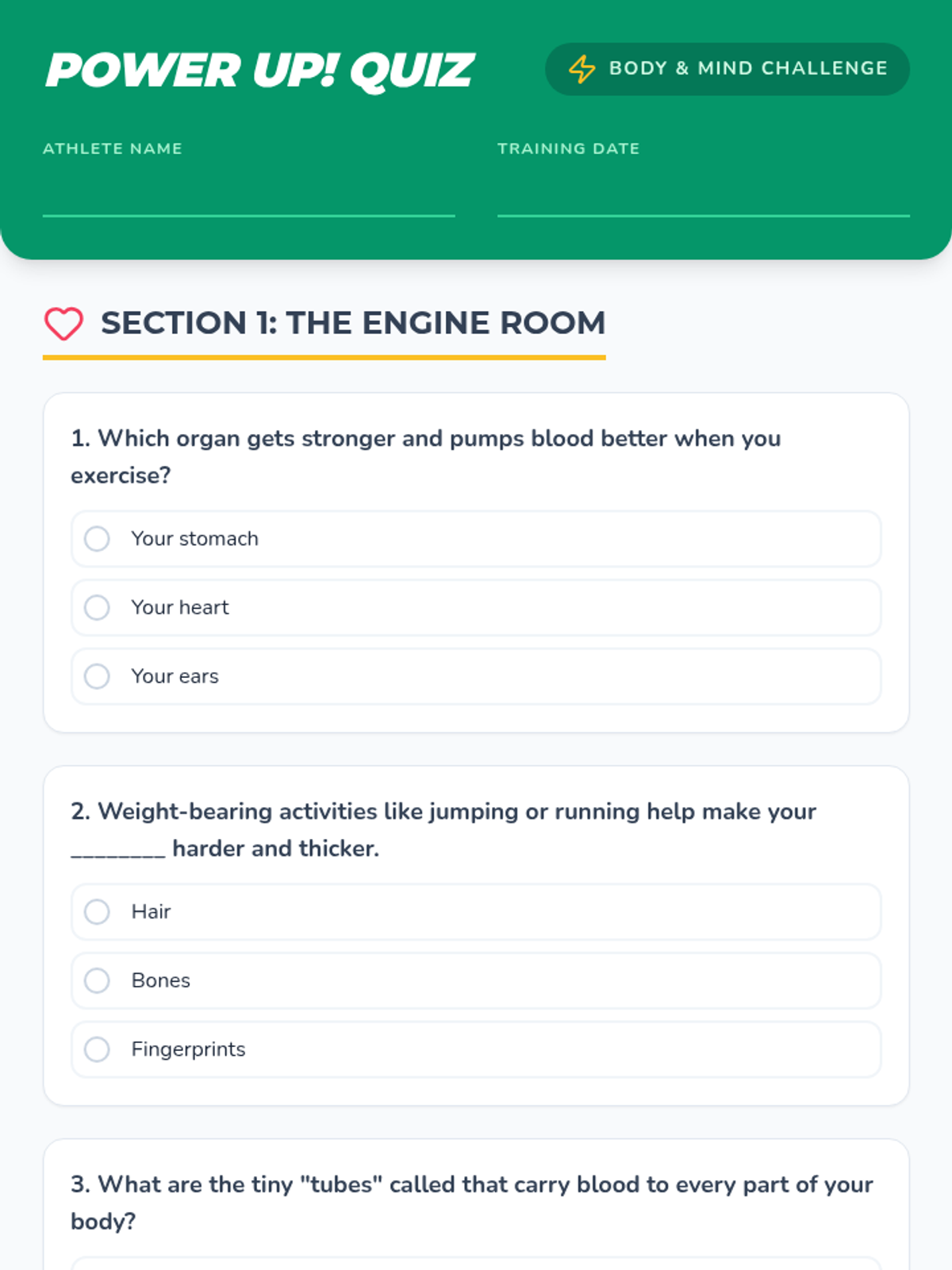A fun and engaging assessment focused on how physical activity strengthens the body, improves mental health, and supports heart and bone health.