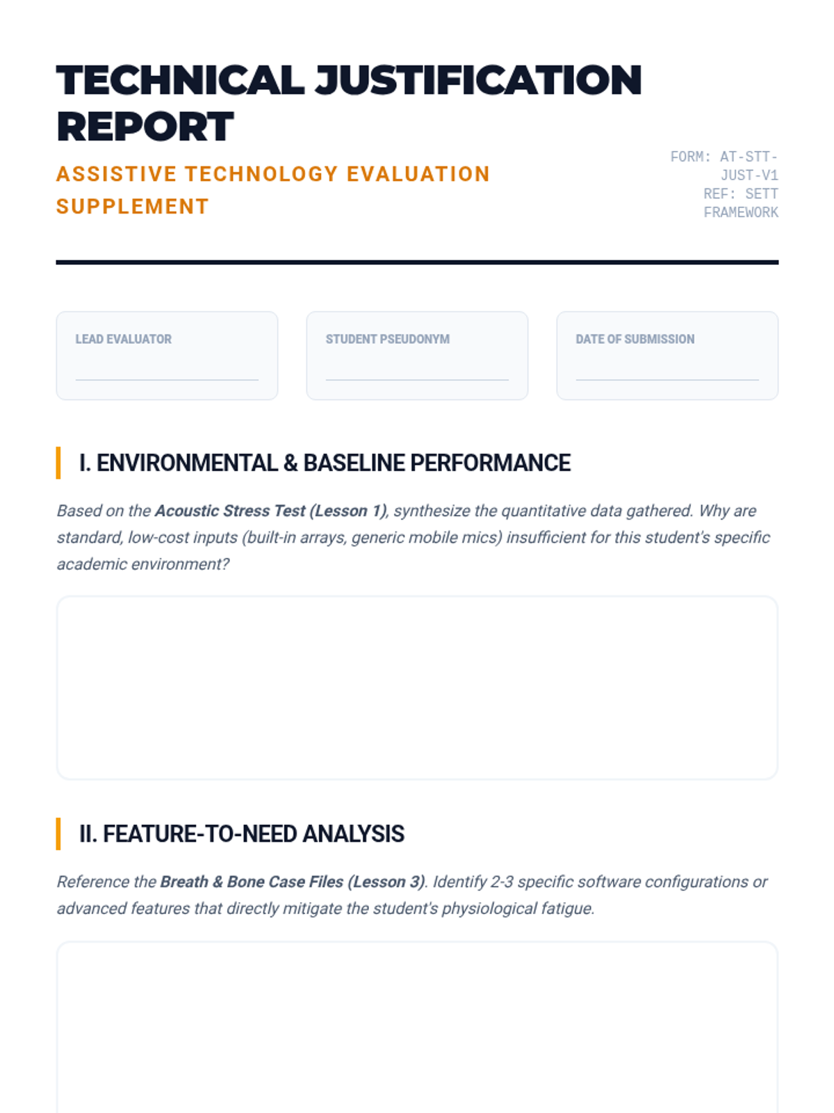 Students learn to write the justification section of an assistive technology evaluation. They must use data gathered from previous lessons to argue for a specific tool setup (e.g., why a student needs Dragon over free Google typing).