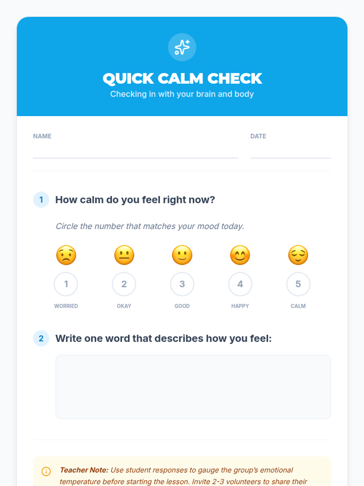 A 30-minute professional development session for preschool and K-8 staff focusing on restorative circles, affective statements, and re-entry reflection tools.