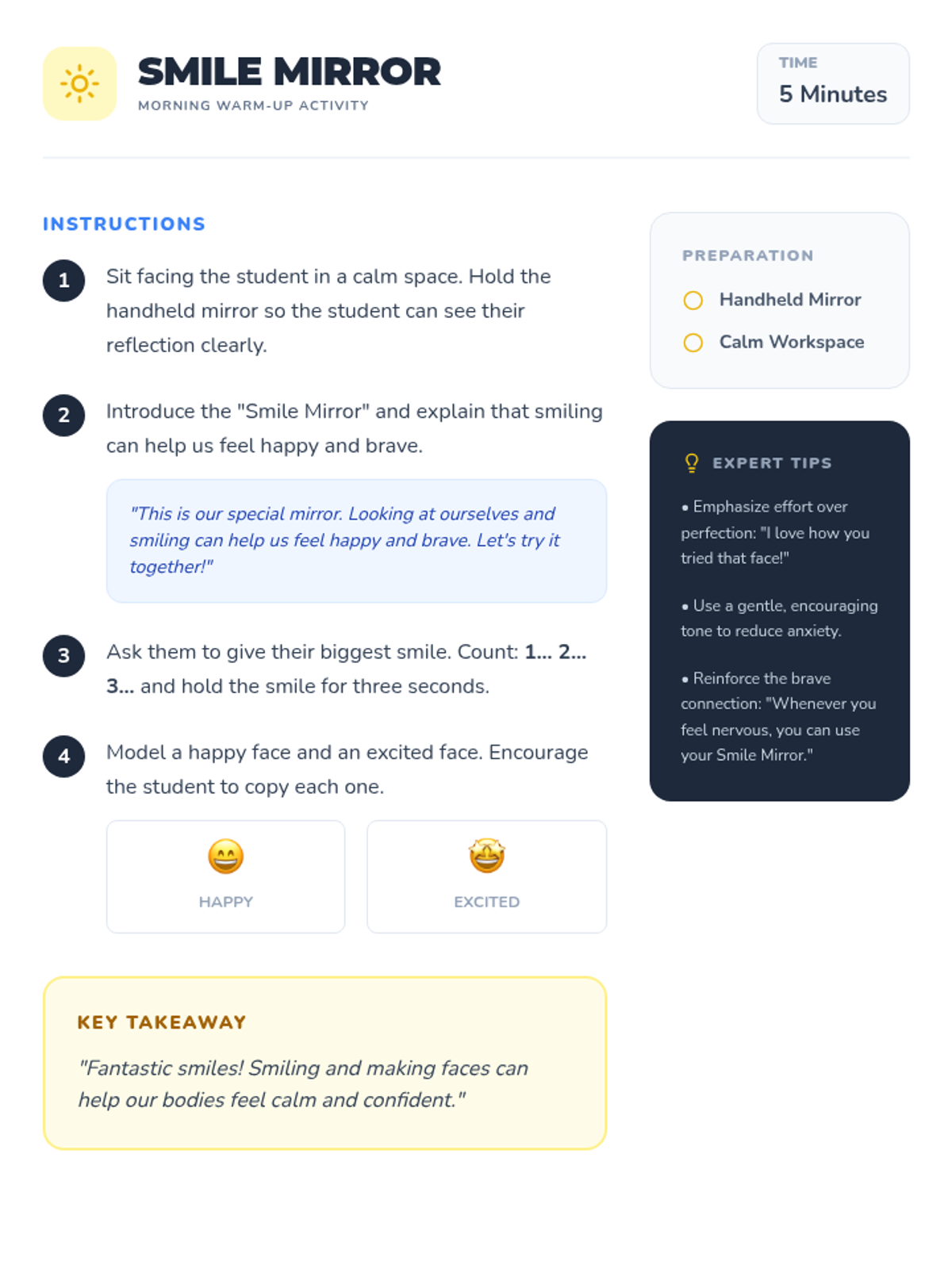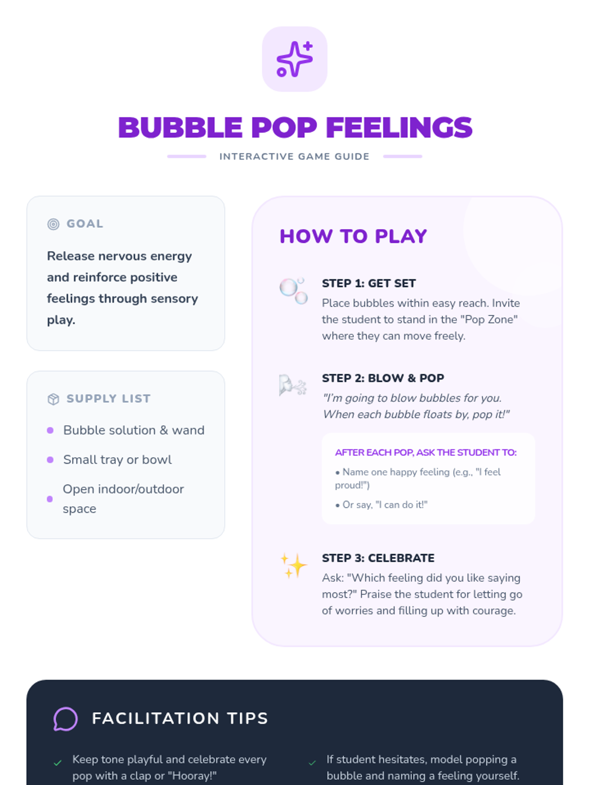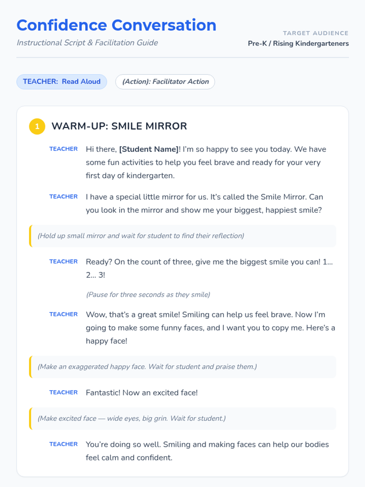 A 30-minute individual session designed to ease kindergarten anxiety and build confidence in pre-K students through play, role-play, and emotional expression.