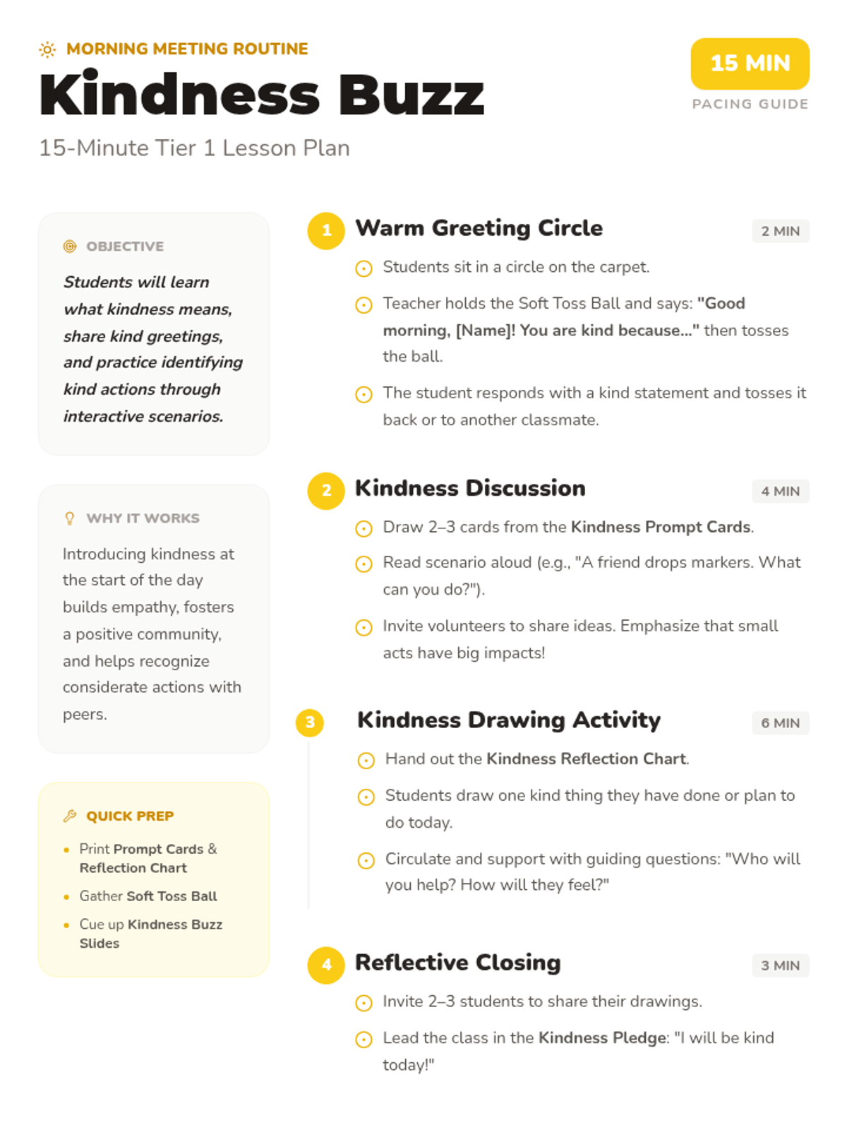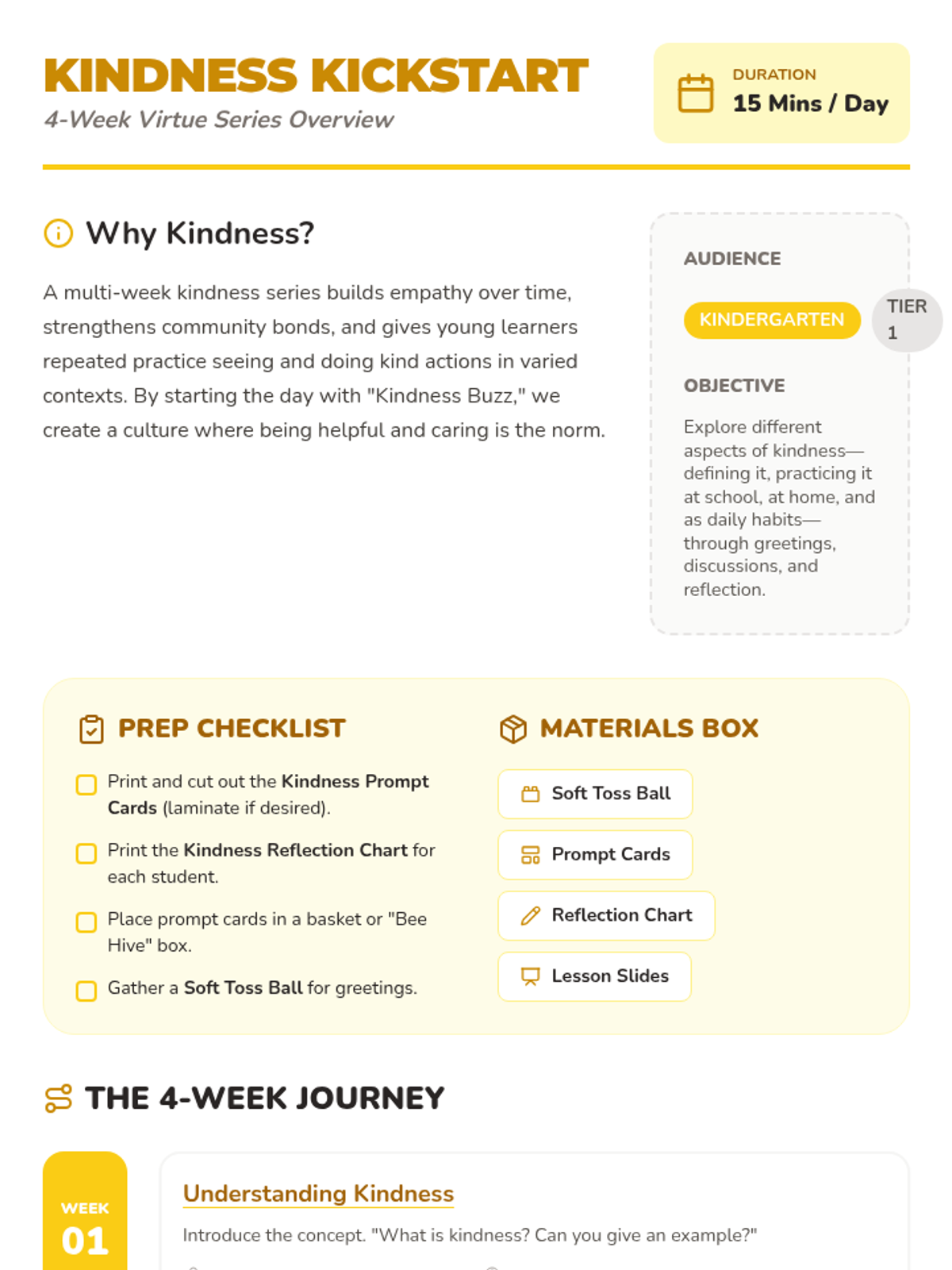 A 4-week morning meeting series for kindergarteners to explore, practice, and reflect on kindness through interactive circle time and creative activities.