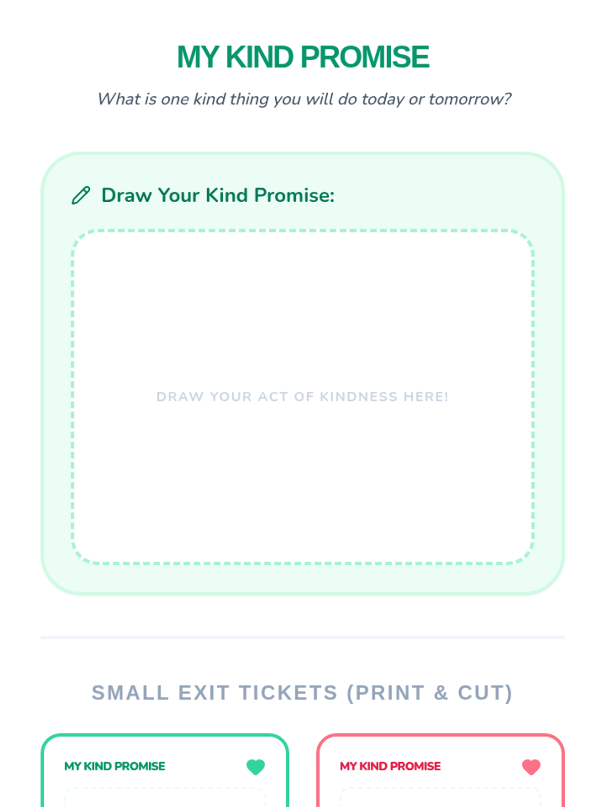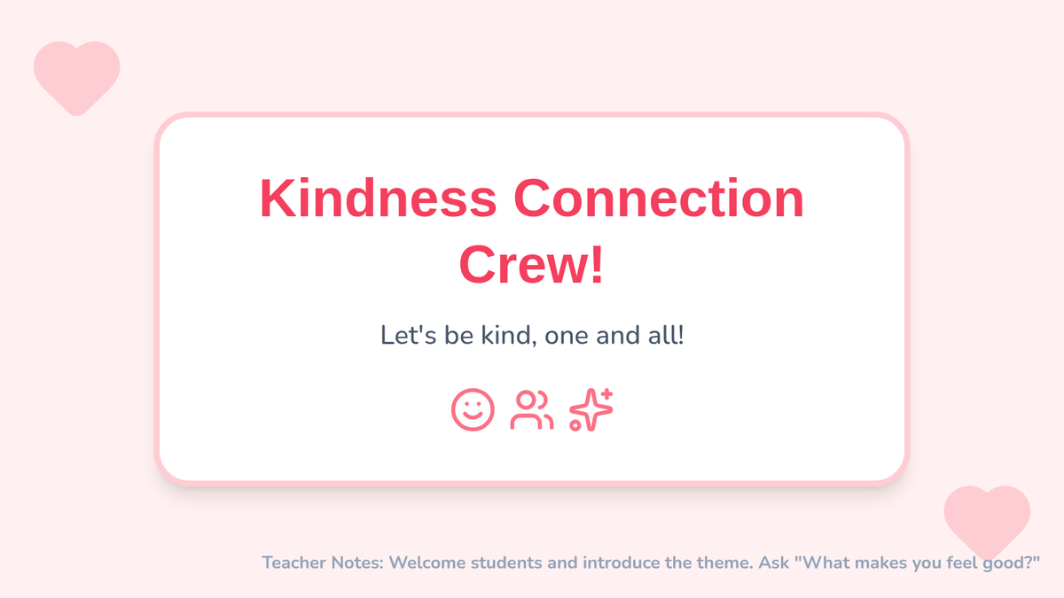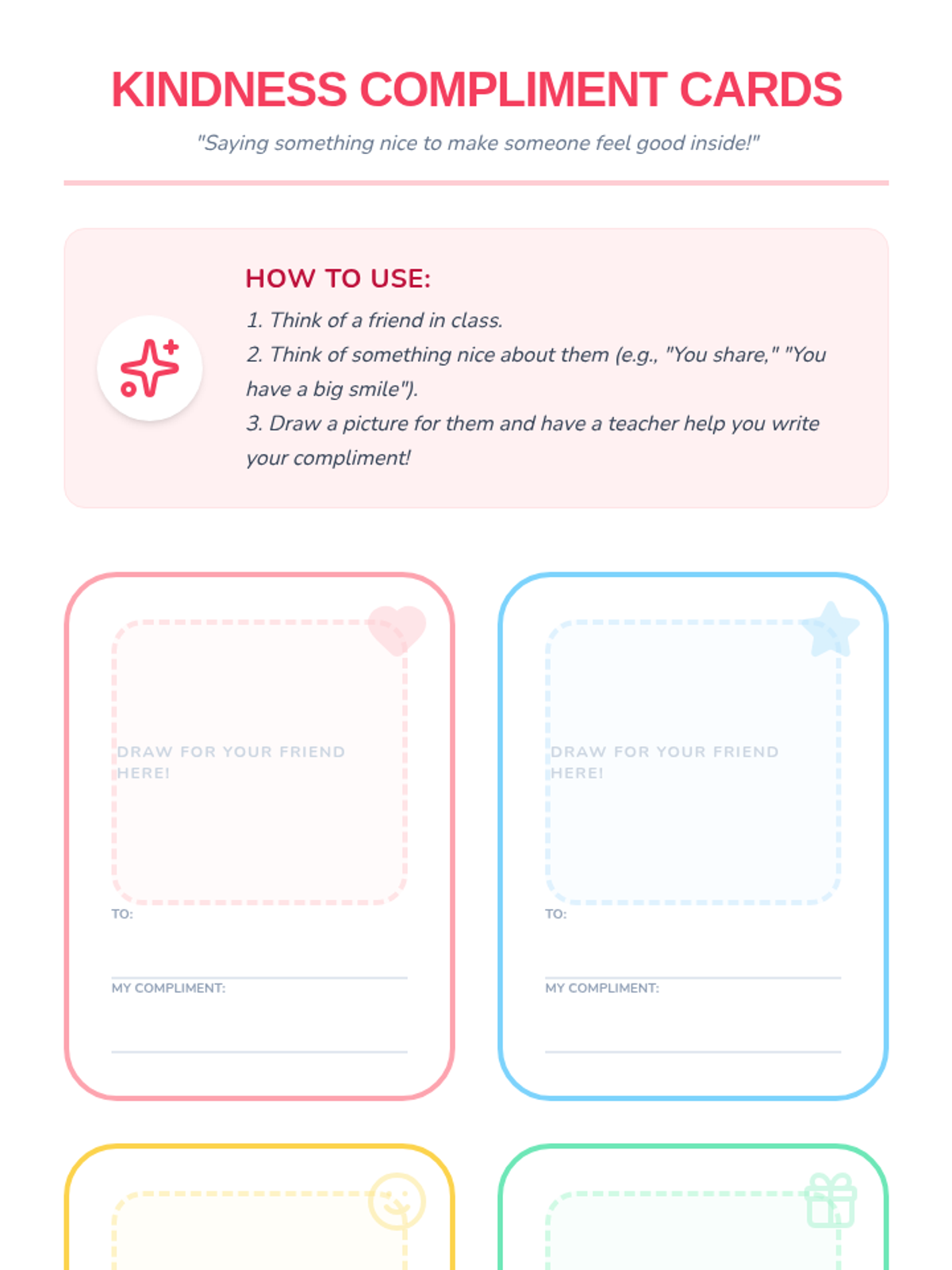 A heartwarming Kindergarten lesson focused on empathy and kindness, featuring interactive storytelling, a collaborative Kindness Chain activity, and optional compliment card creation.