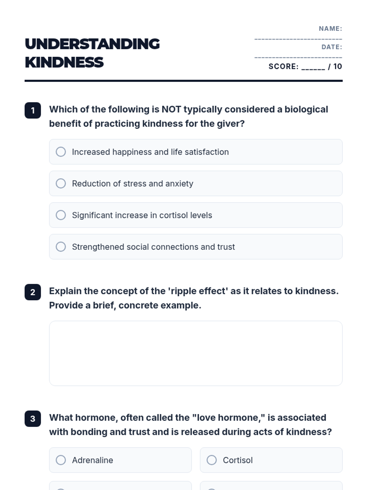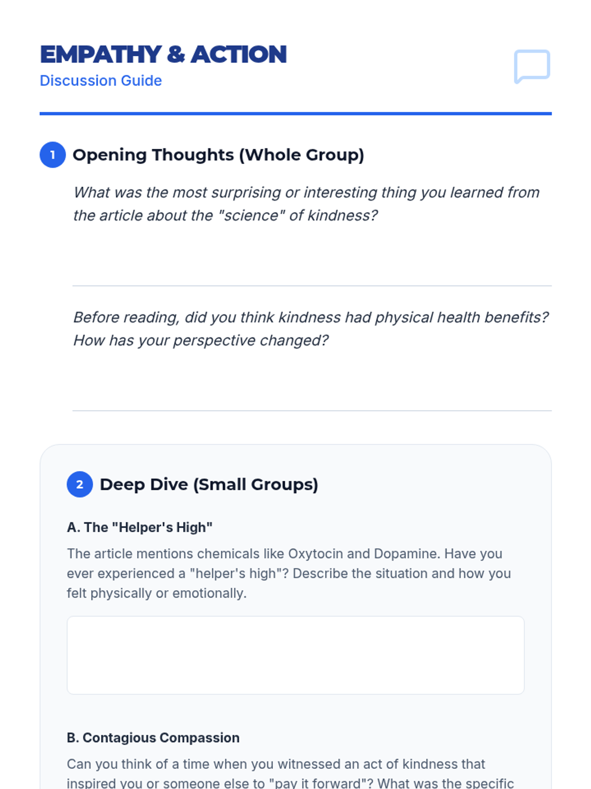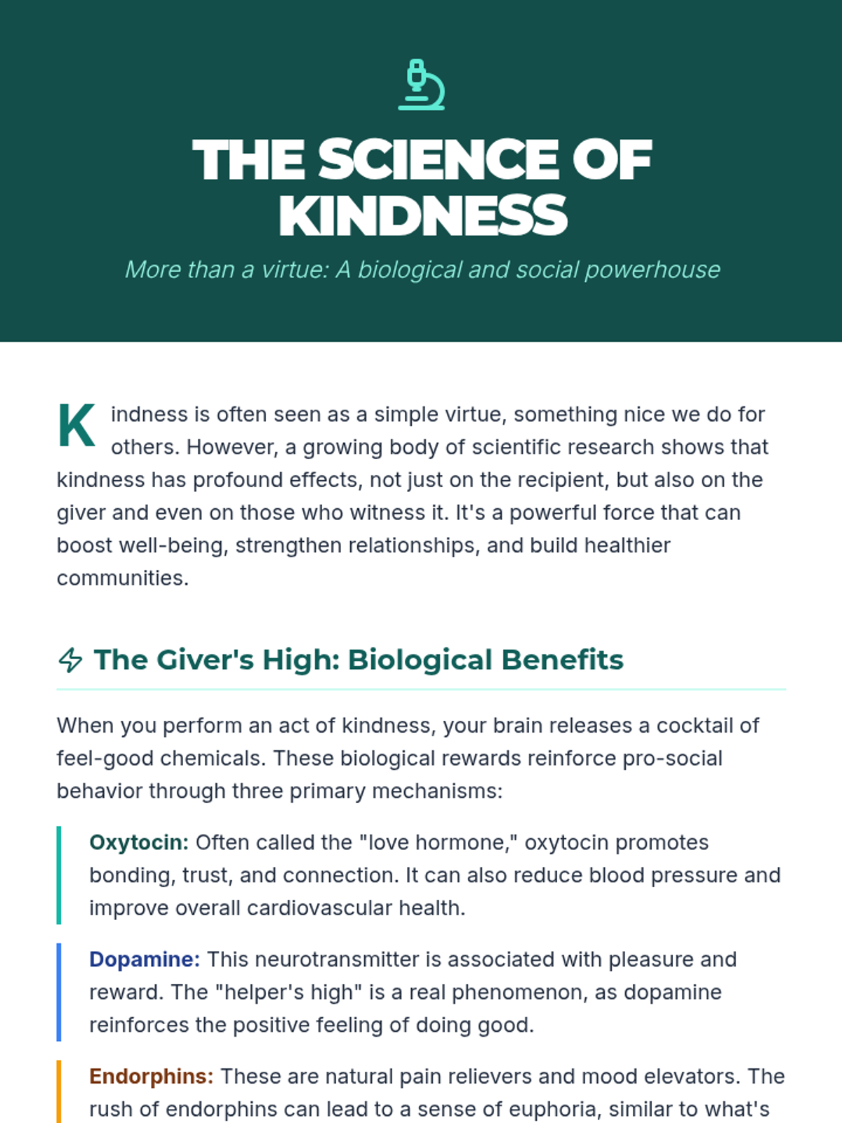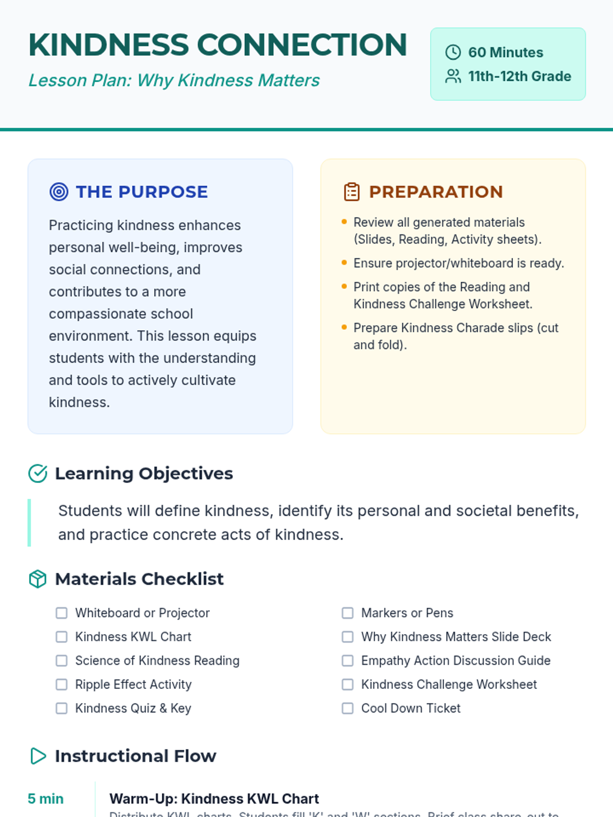 This lesson explores the psychological benefits and social impact of kindness, empowering high school students to integrate intentional acts of compassion into their daily lives.