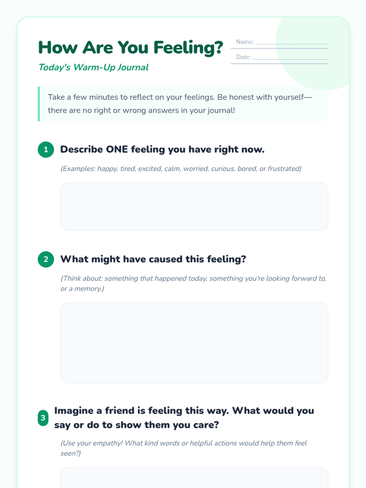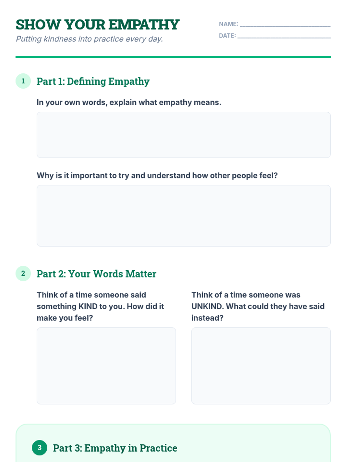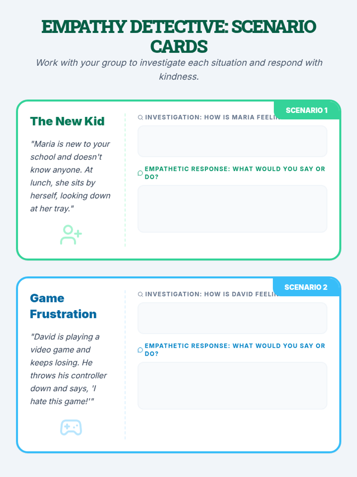 A 20-minute SEL lesson for 5th graders focusing on defining empathy, recognizing feelings, and choosing kind words to build a compassionate classroom community.