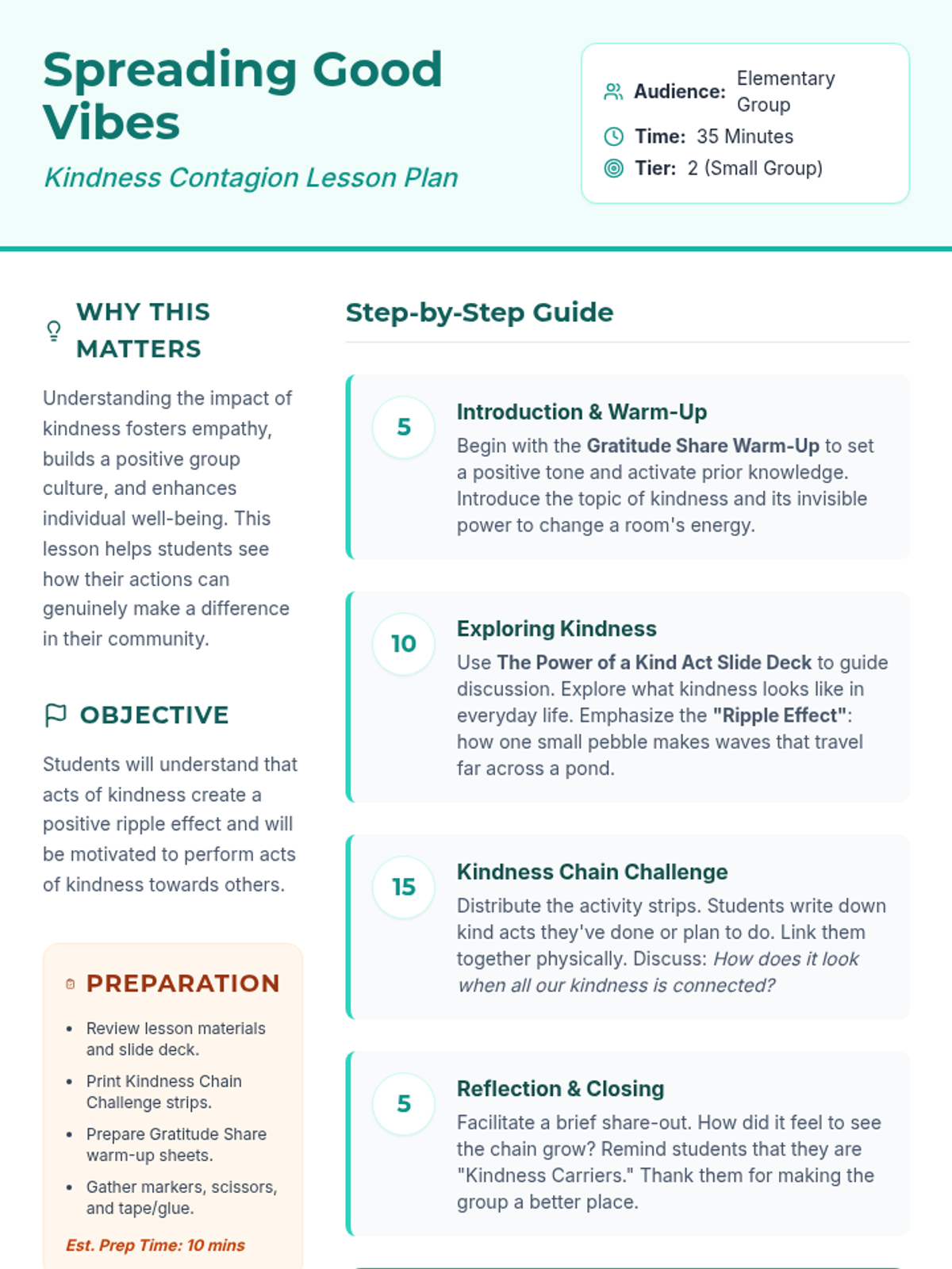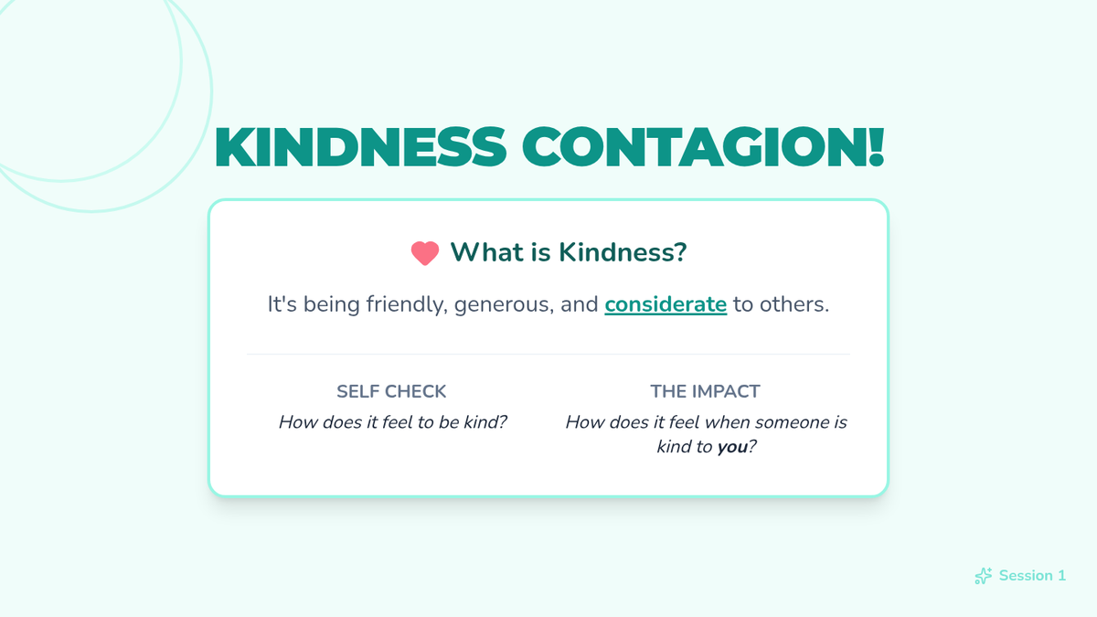 An interactive group counseling session for elementary students focused on the ripple effect of kindness and building a positive group culture through intentional acts of goodwill.