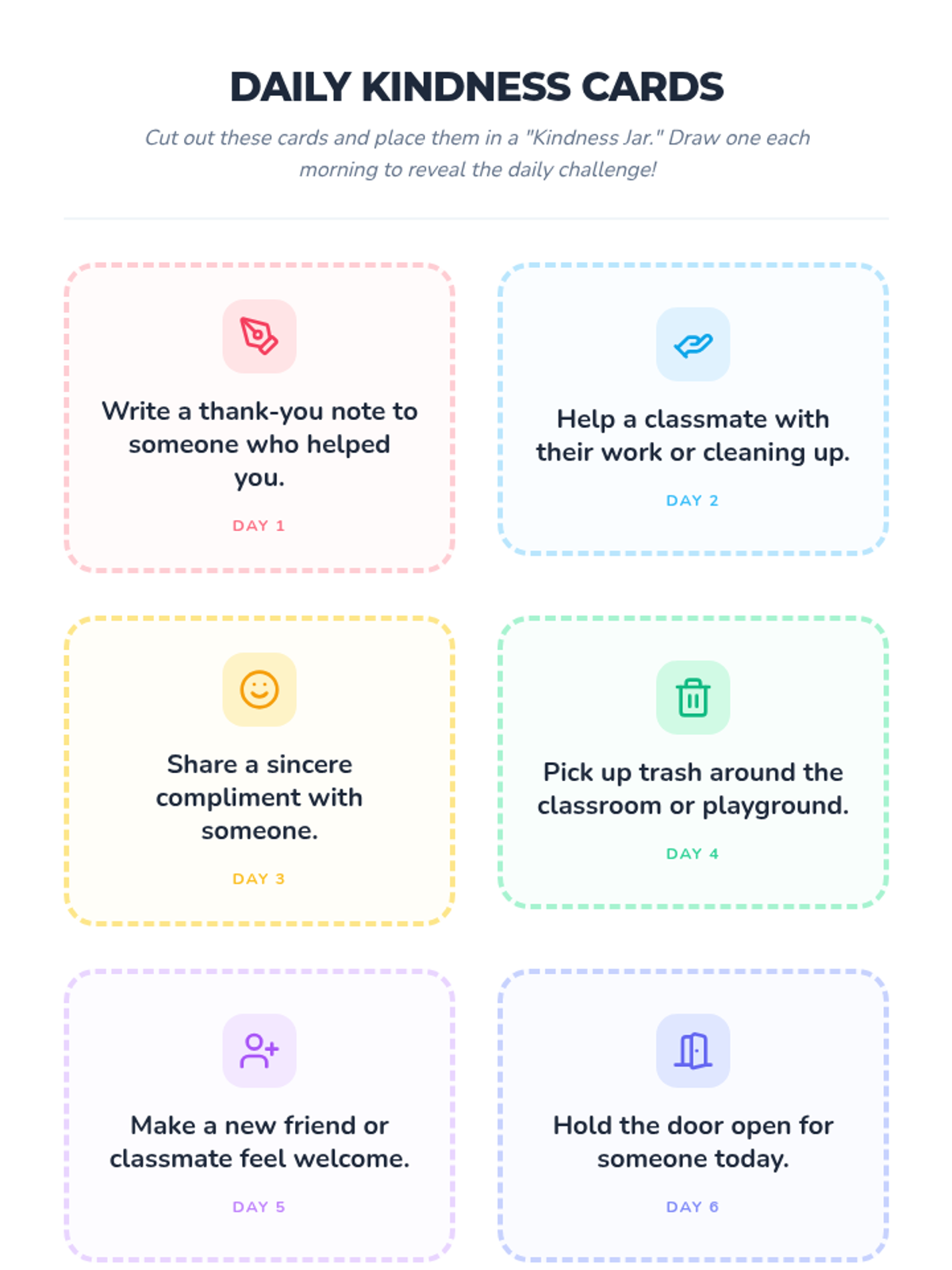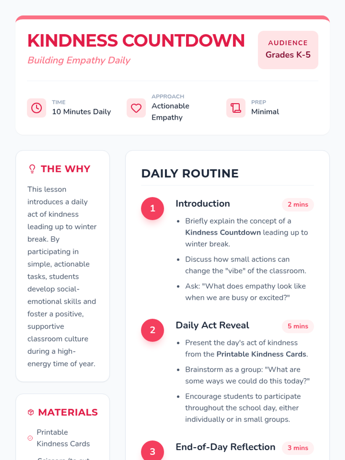 A daily 10-minute activity series leading up to winter break that fosters empathy and community through simple, actionable acts of kindness.
