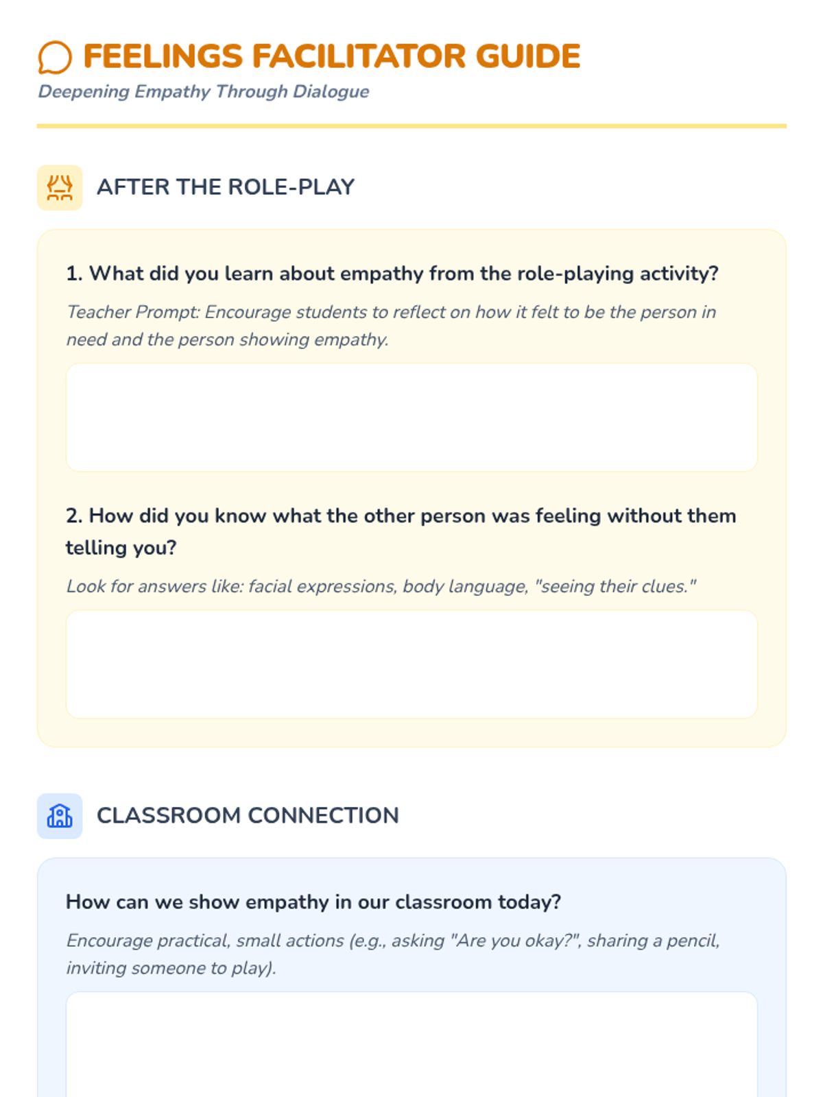 A social-emotional learning lesson where students explore empathy through storytelling, role-playing, and reflection to build a more inclusive classroom.