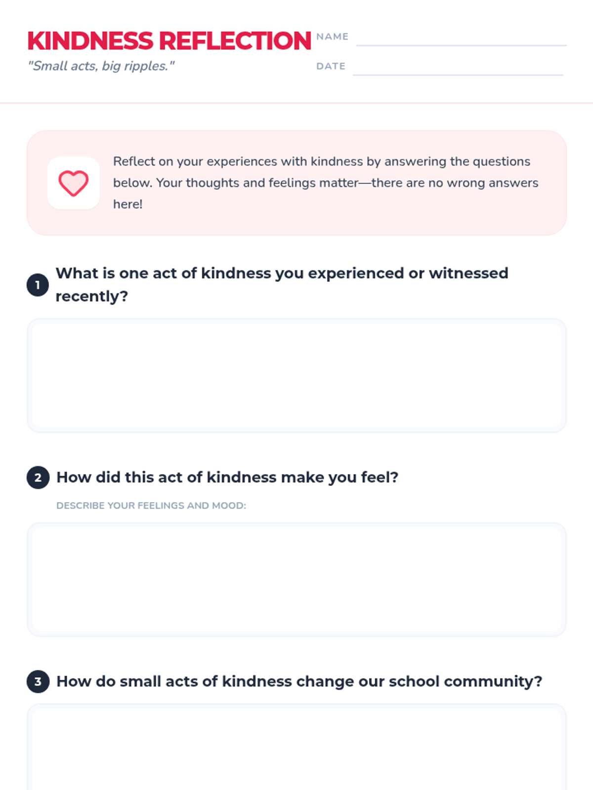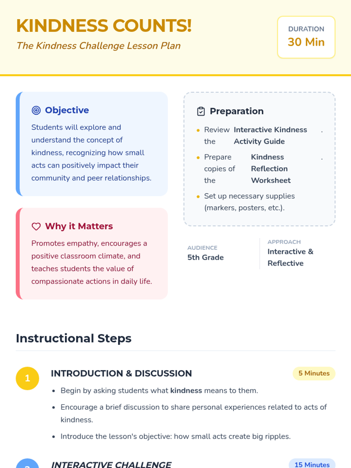 A 30-minute Tier 1 classroom lesson for 5th graders focused on the ripple effect of small acts of kindness. Students engage in discussion, a brainstorming challenge, and personal reflection.