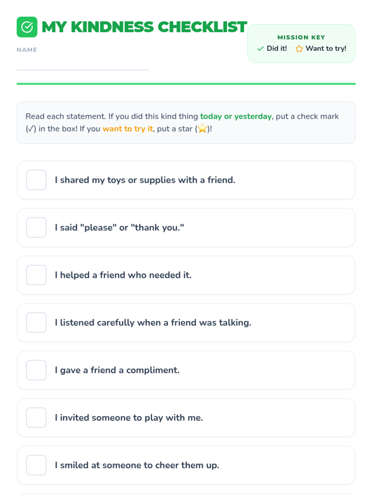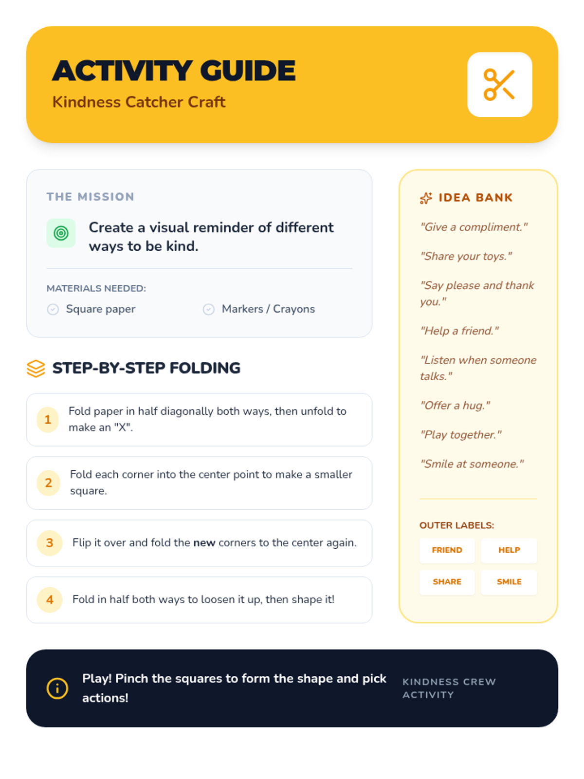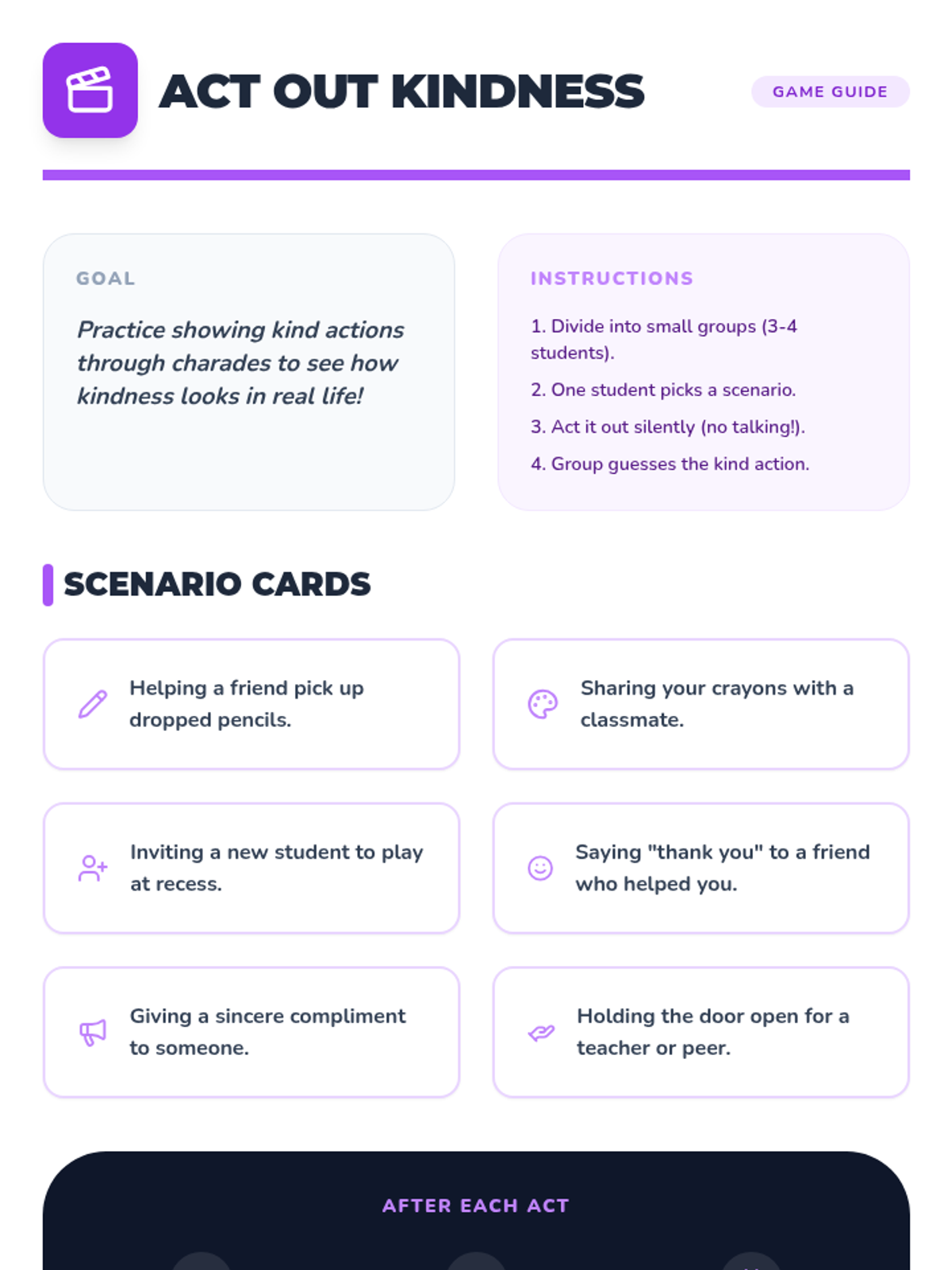 A 30-minute lesson for first-grade students focused on identifying and practicing kind behaviors to build strong friendships and a positive classroom community.
