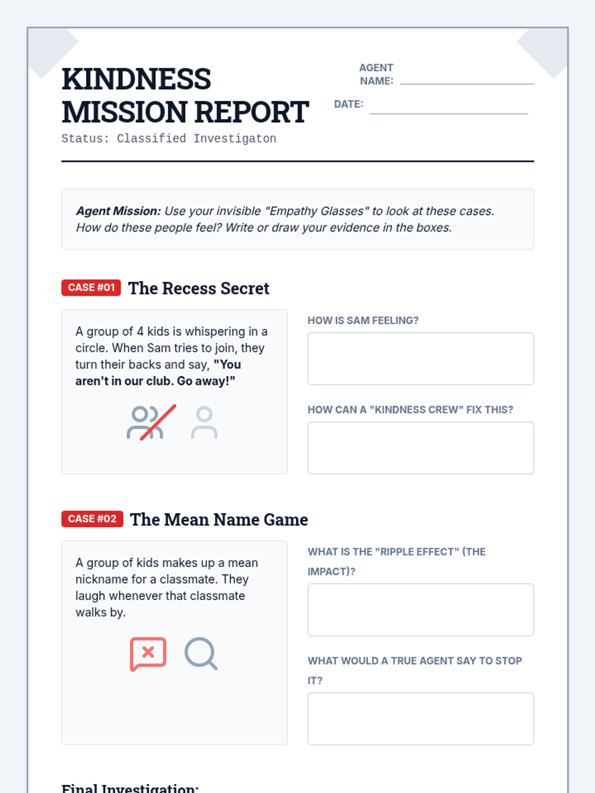 A social-emotional learning lesson designed for 2nd graders to redirect group energy from exclusionary and hurtful 'gang' behavior toward positive, empathy-based community building. Students learn about the impact of their actions and how to form 'Kindness Crews' that support others.
