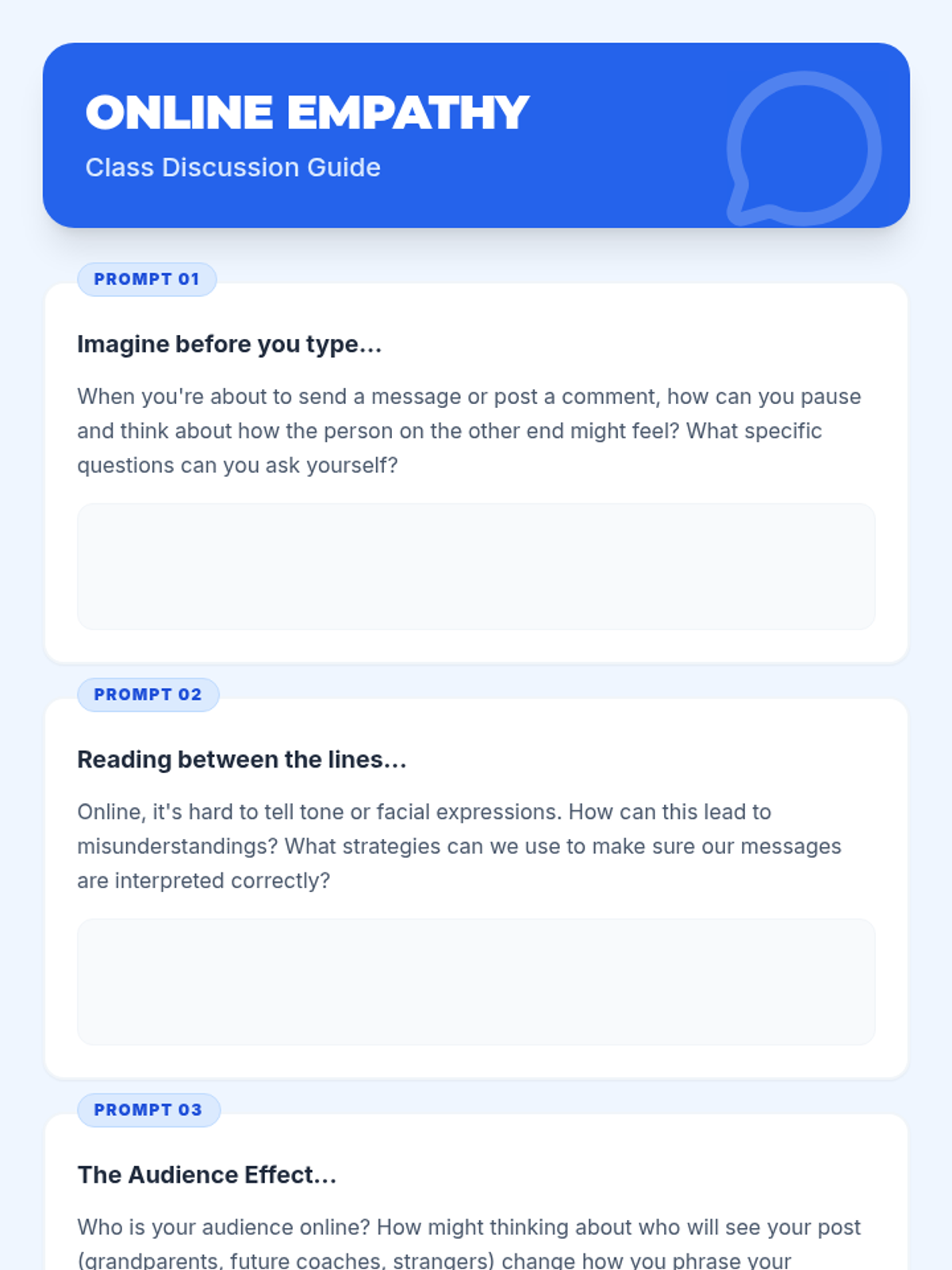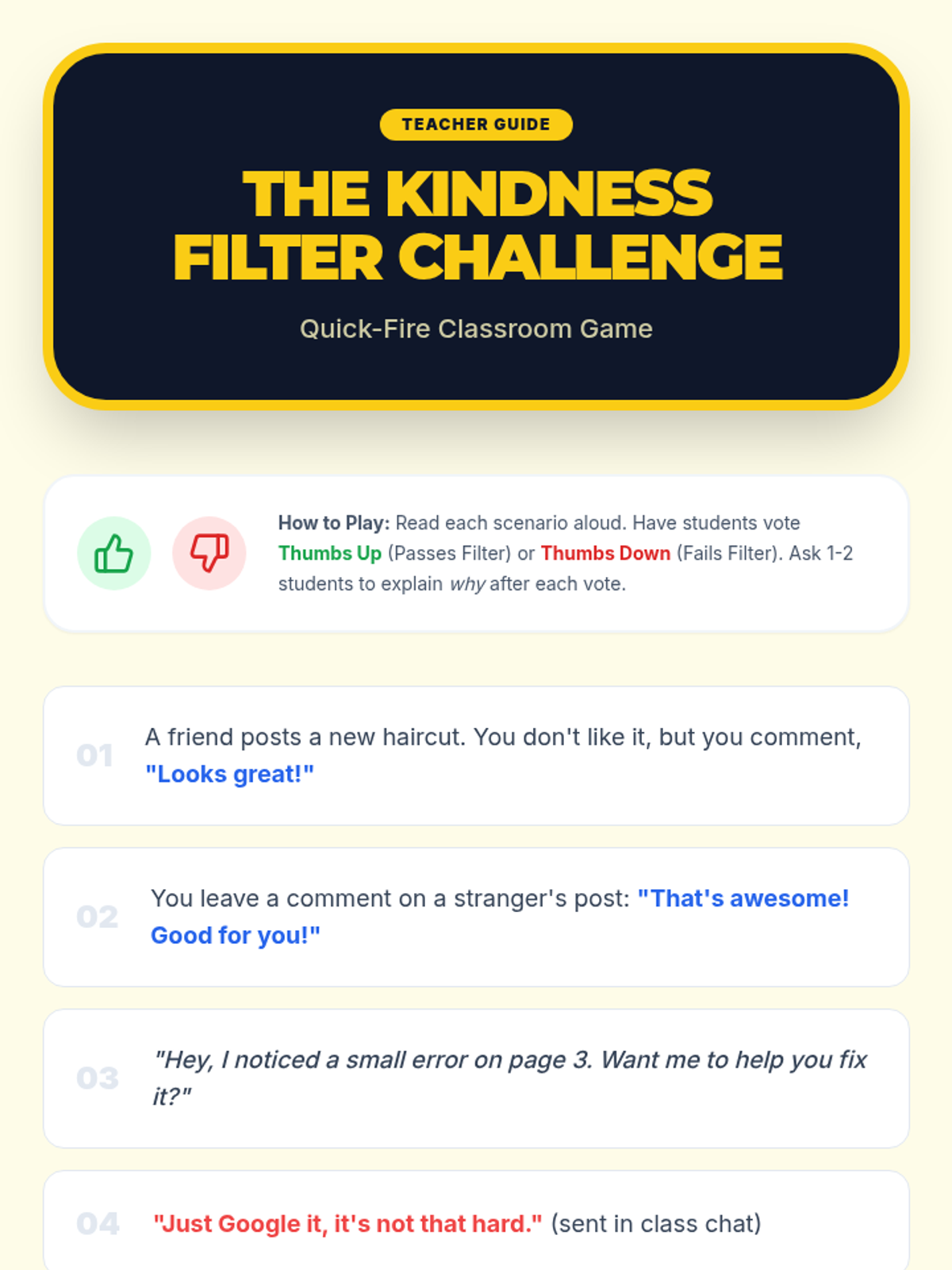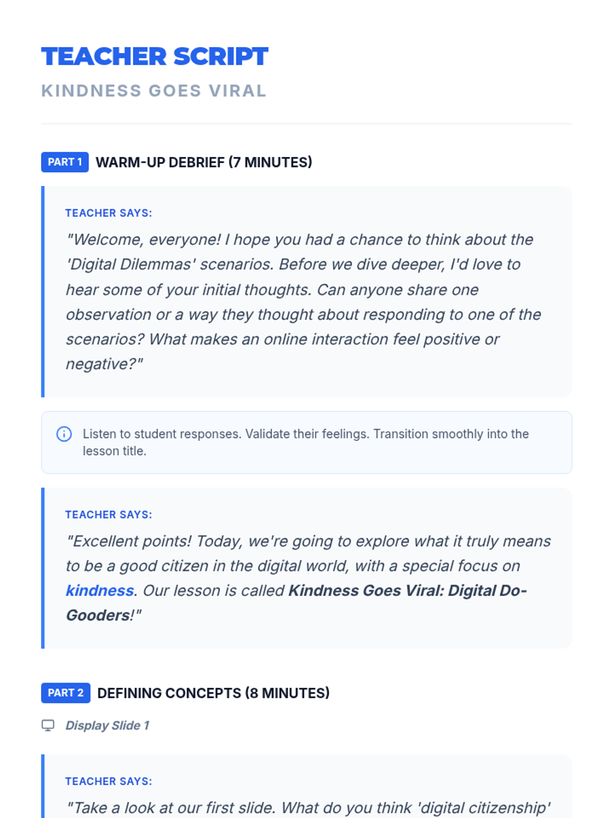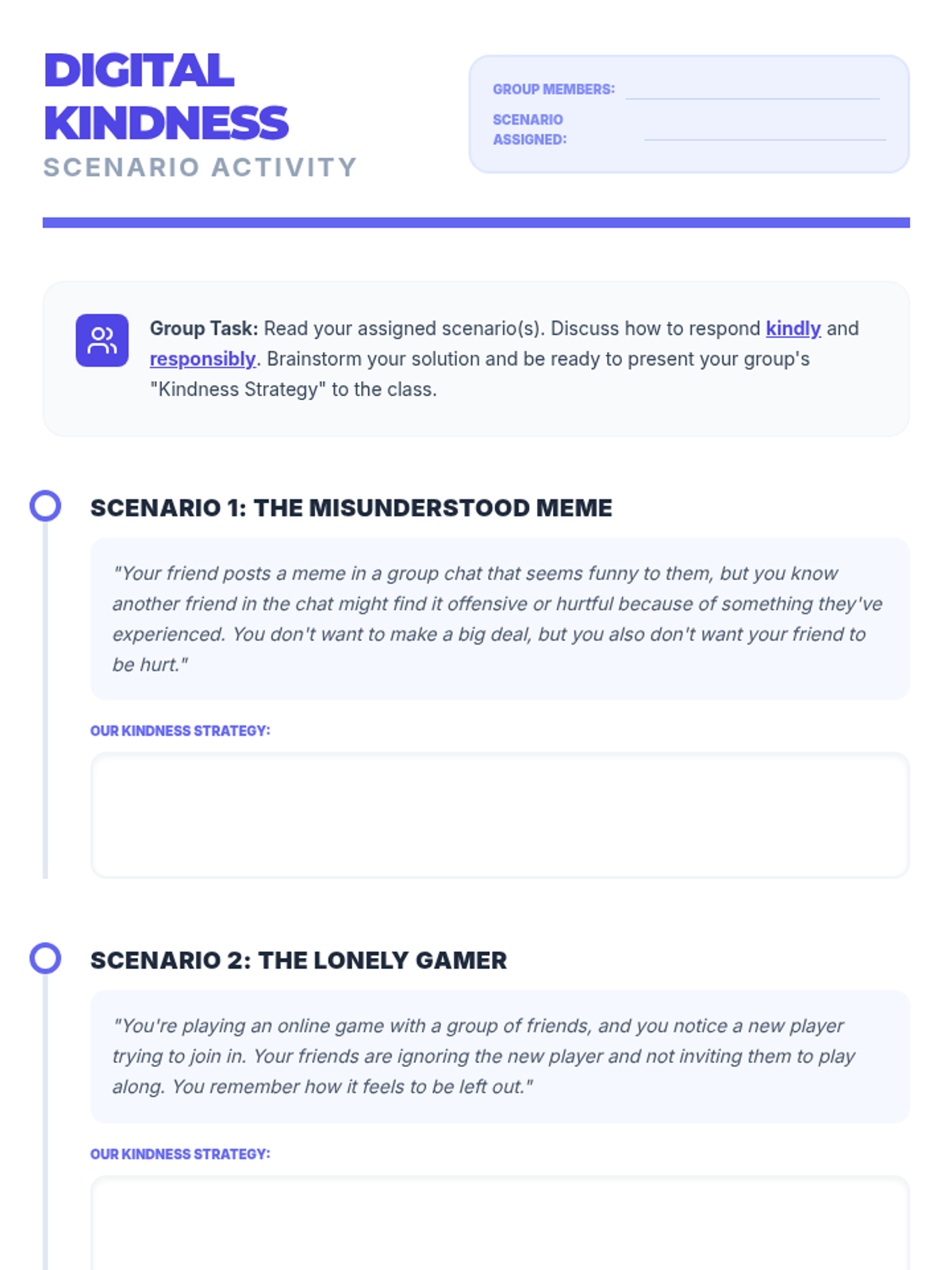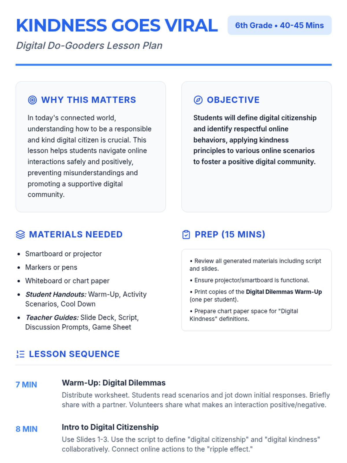 Empower 6th-grade students to understand and practice digital citizenship with a focus on kindness. This lesson explores the impact of online actions, promotes empathy, and encourages positive digital interactions through discussions, scenarios, and a 'Kindness Filter' challenge.