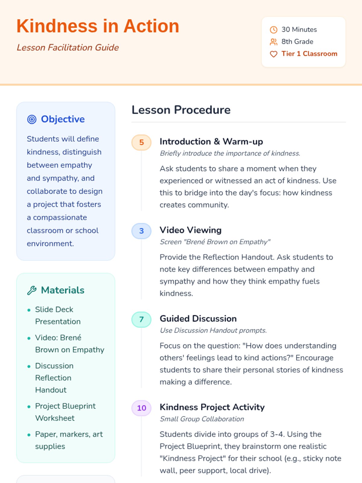 8th-grade students explore the ripple effect of kindness and empathy through a short film by Brené Brown and a collaborative project-based activity.
