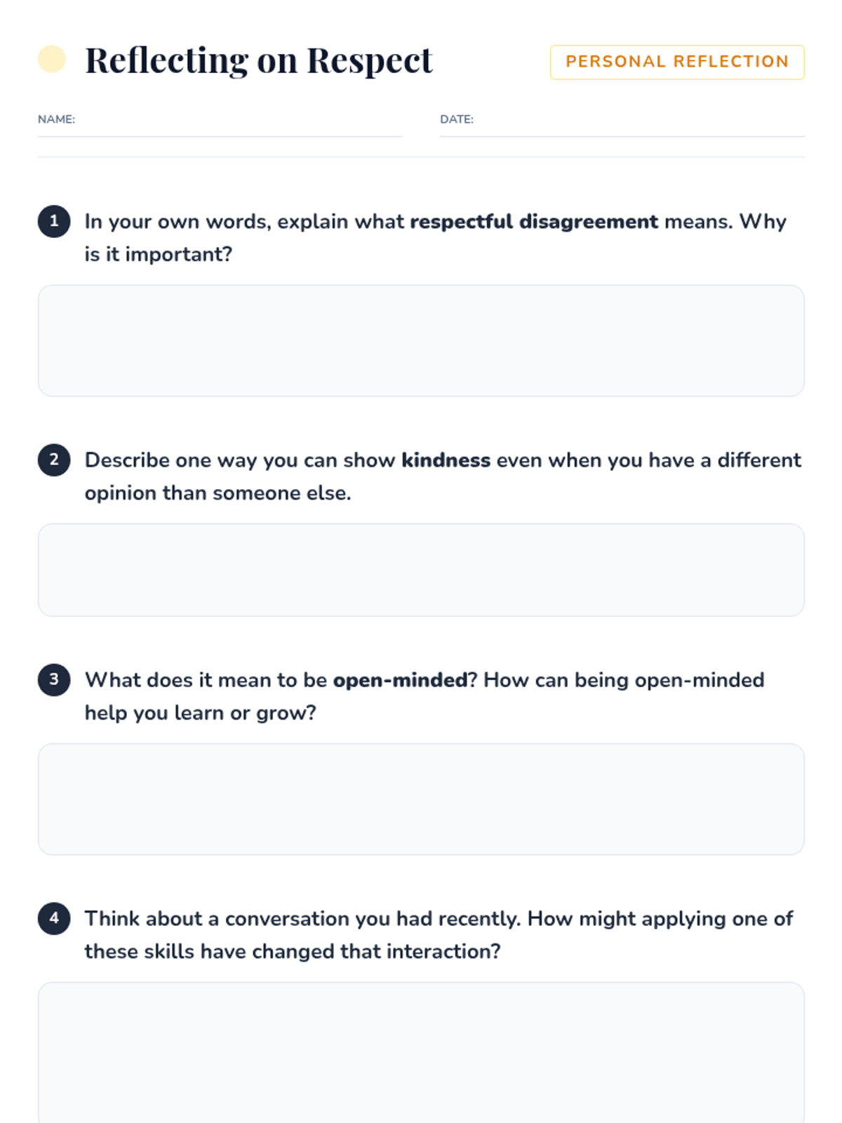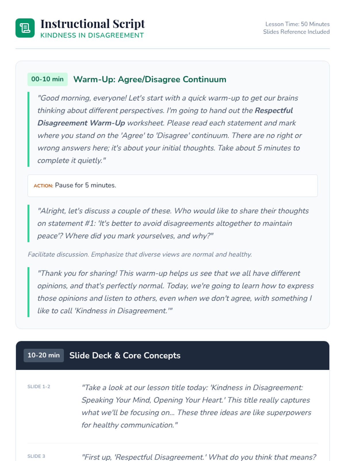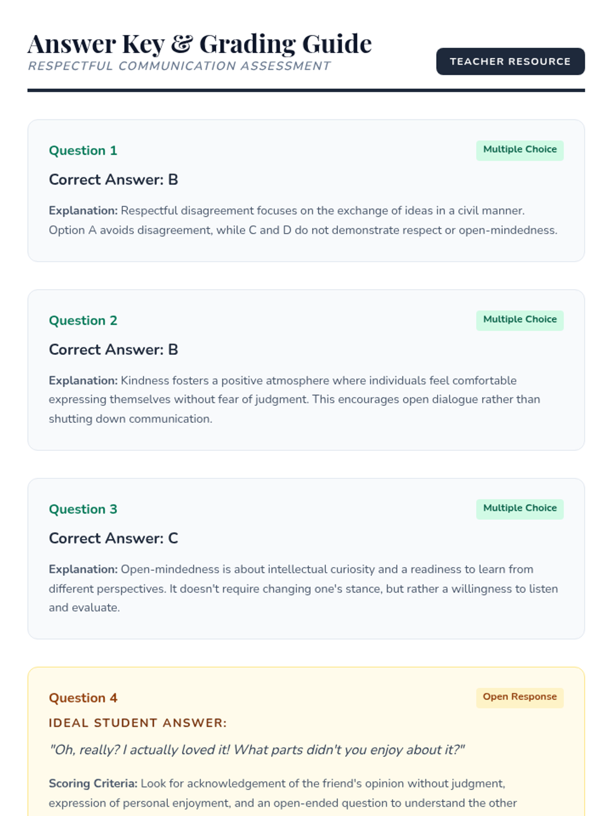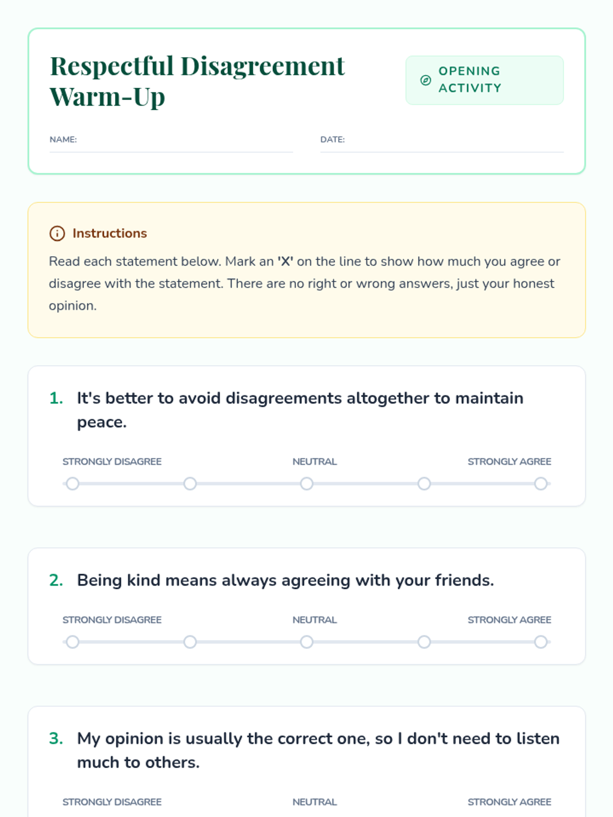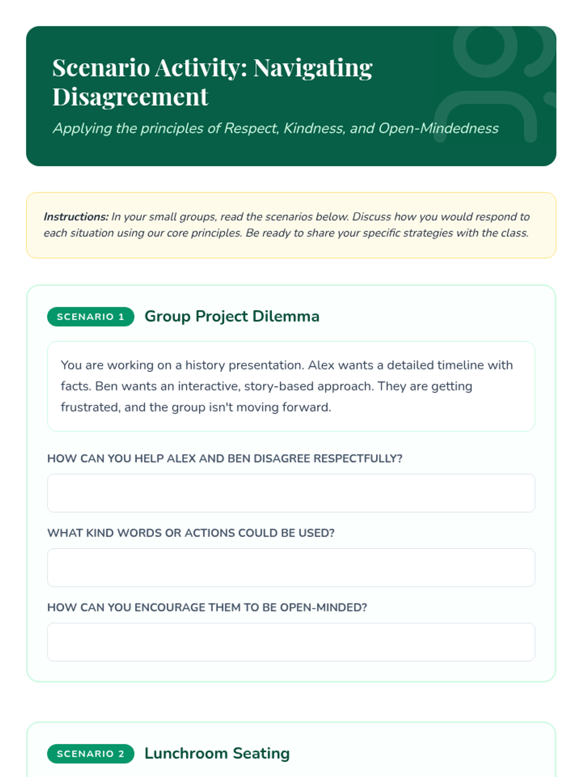 This lesson explores the essential life skills of respectful disagreement, kindness, and open-mindedness through the story of a school mural debate. Students will learn to engage in constructive discussions and appreciate diverse perspectives while practicing effective communication.