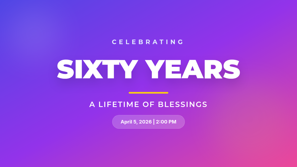 A sophisticated and modern slide deck for a 60th birthday celebration, featuring a full order of service and thematic transitions.