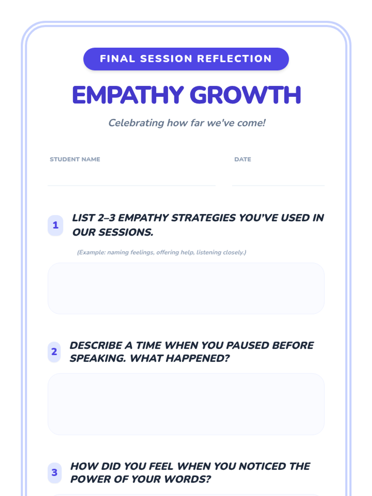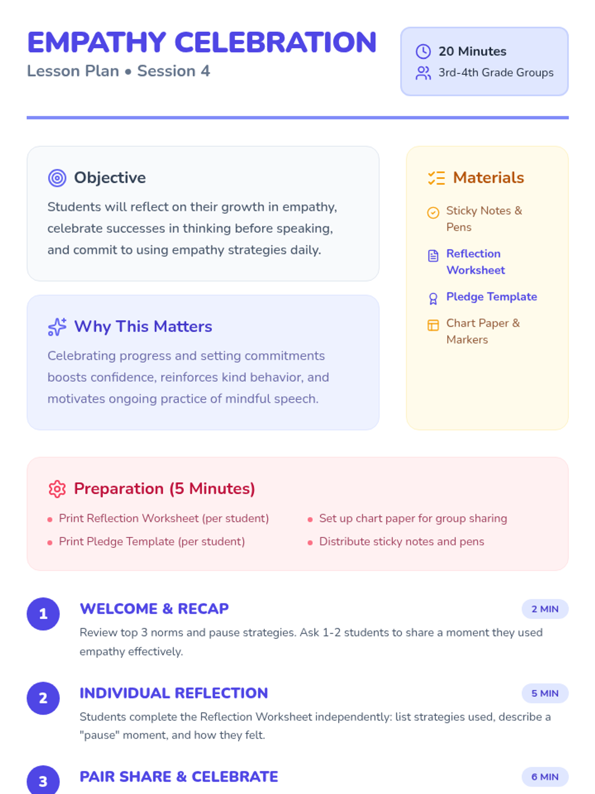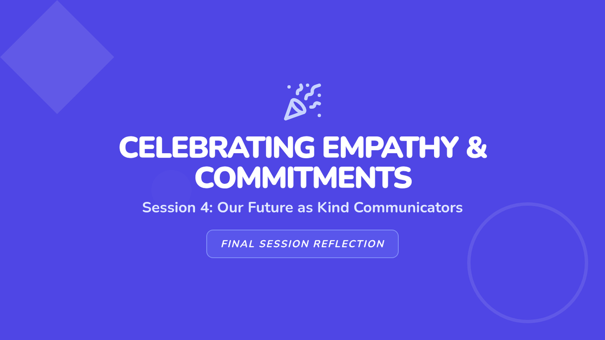 A final session for celebrating progress, reflecting on growth, and making a personal commitment to kind speech.