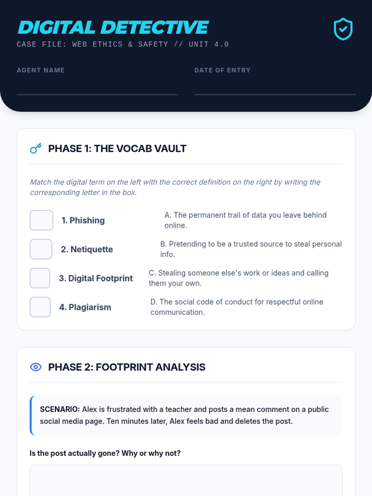 A comprehensive lesson on digital citizenship, focusing on web ethics, personal safety, and responsible online behavior for middle school students.