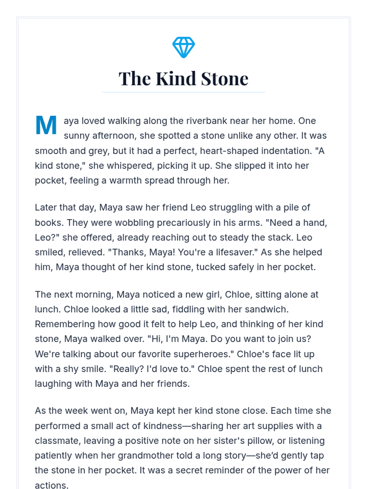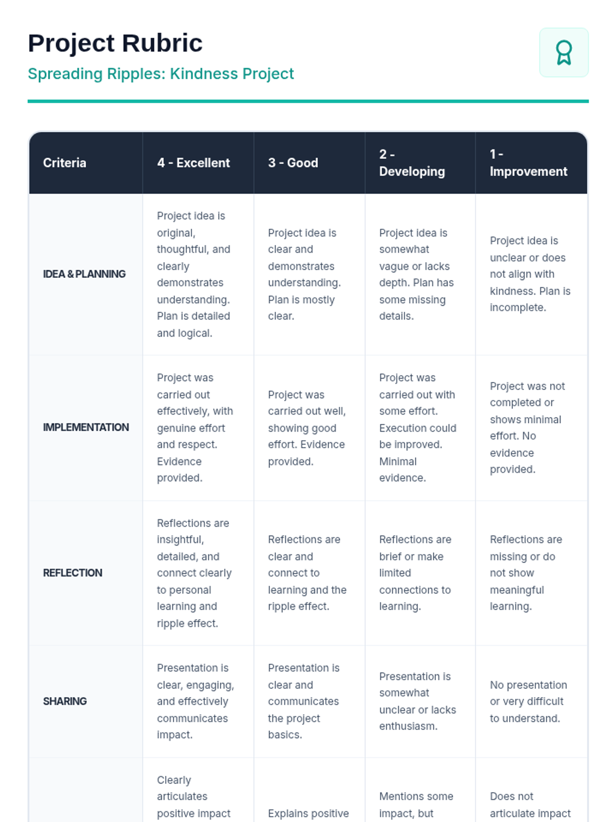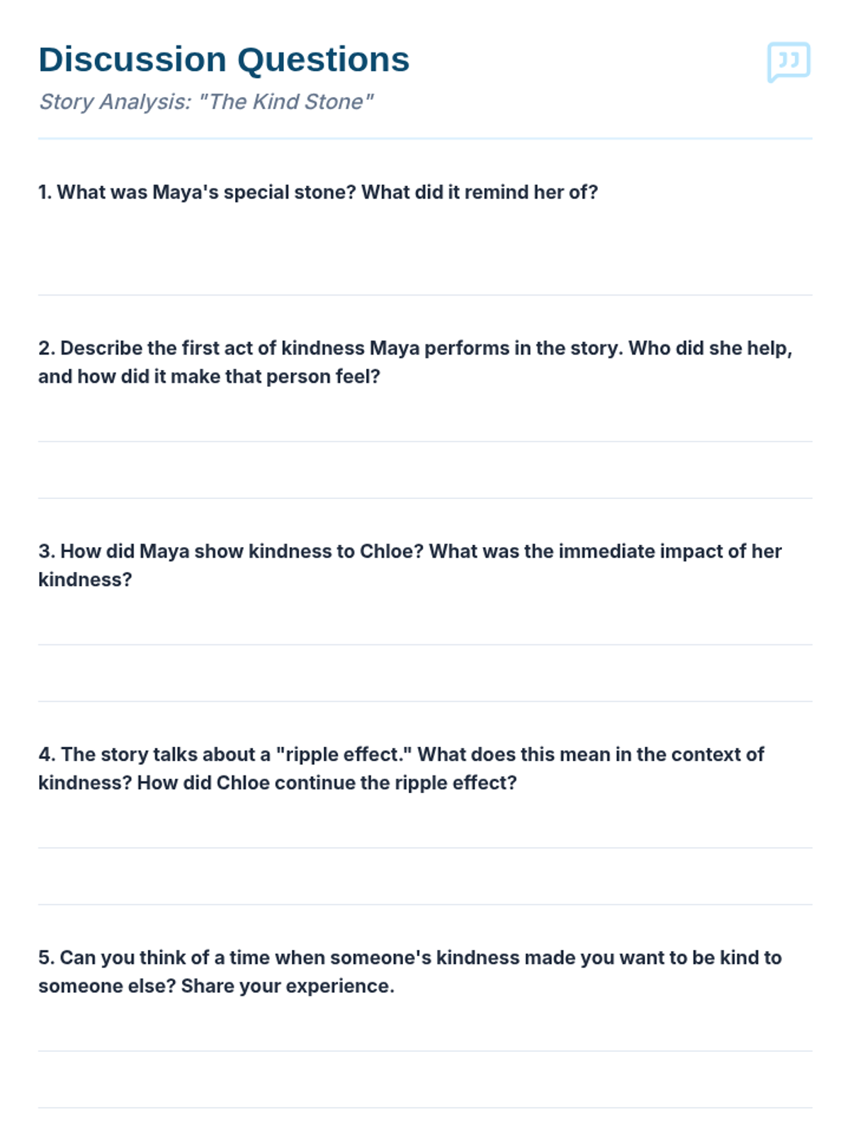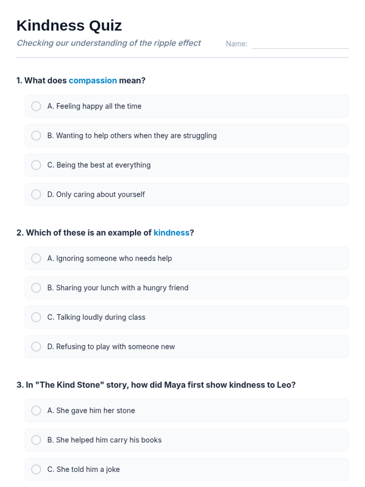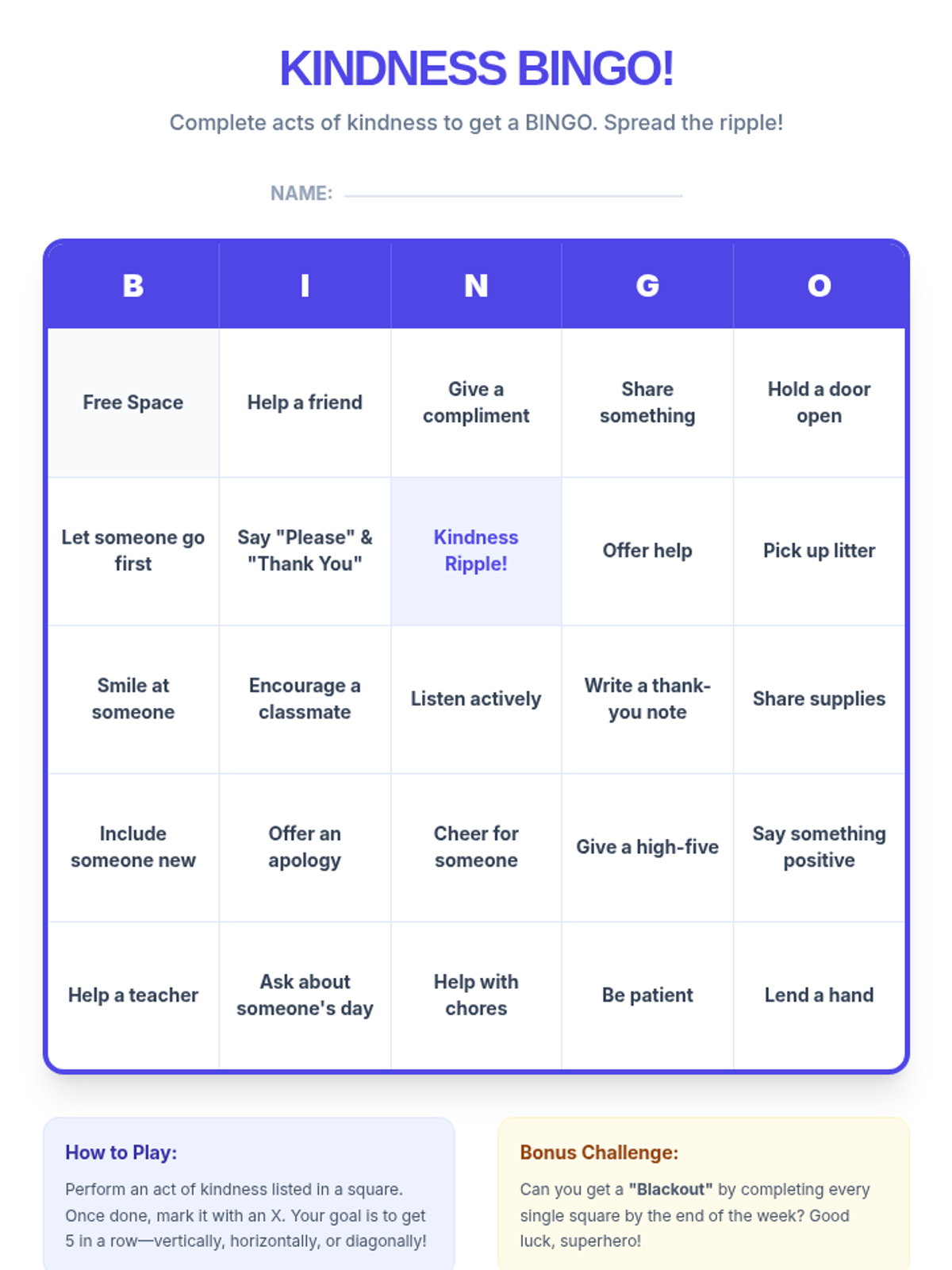 A 60-minute session for 5th-6th graders exploring compassion and kindness through the metaphor of a ripple effect. Students engage in a story, hands-on activity, and ongoing project to foster empathy and positive community relationships.