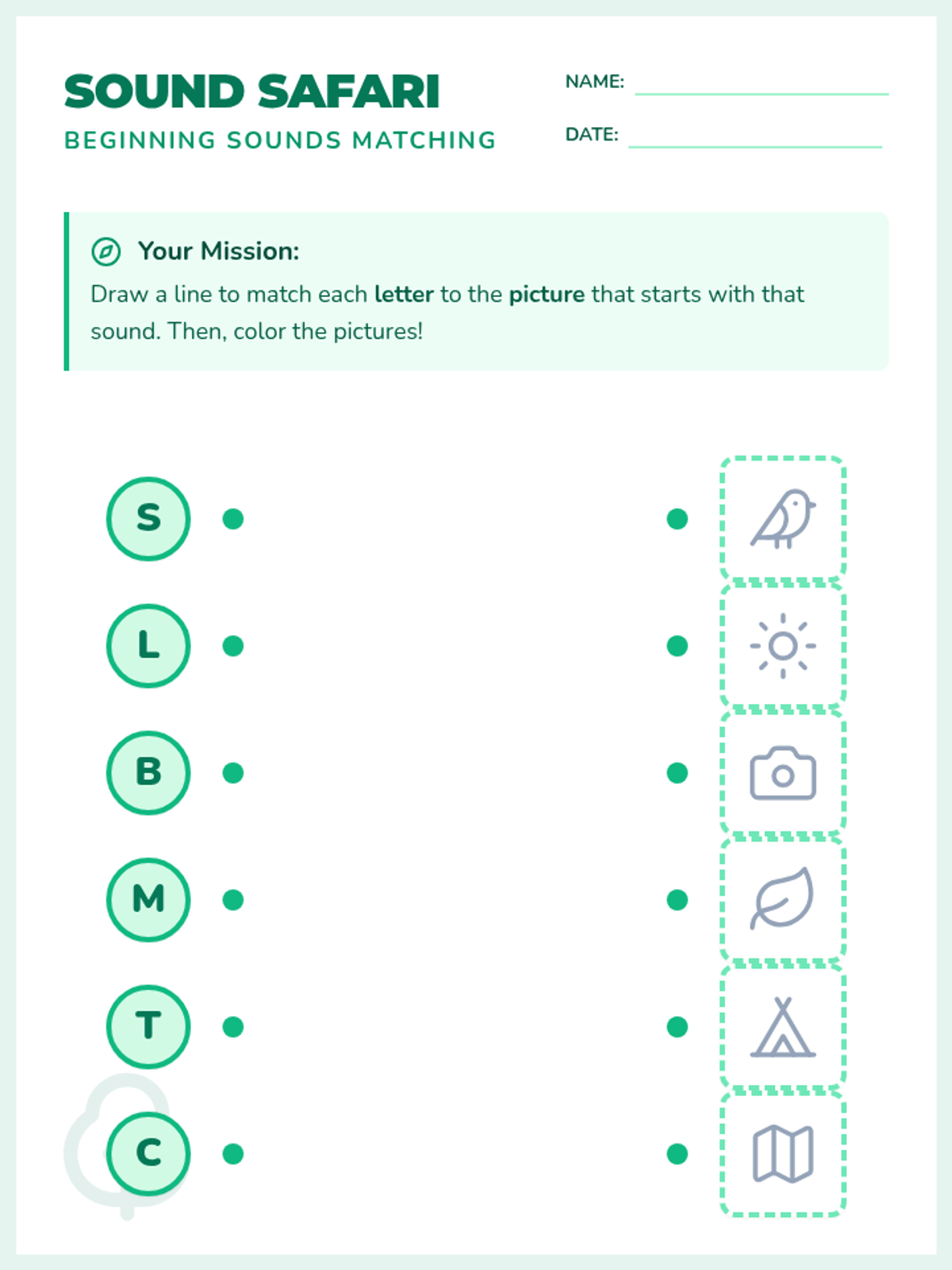 A foundational phonics lesson focused on identifying beginning sounds and matching them to corresponding uppercase letters through a fun safari-themed activity.