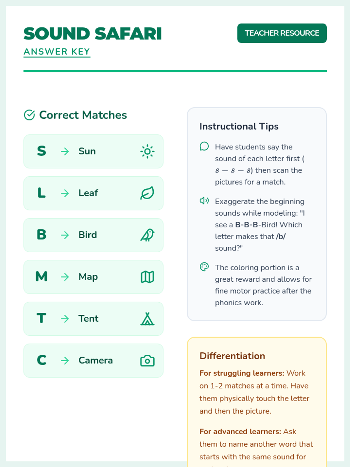 A foundational phonics lesson that introduces and reinforces all consonant sounds and short vowel sounds through interactive "Safari" themed activities. Students will practice letter identification, sound production, and sound sorting.