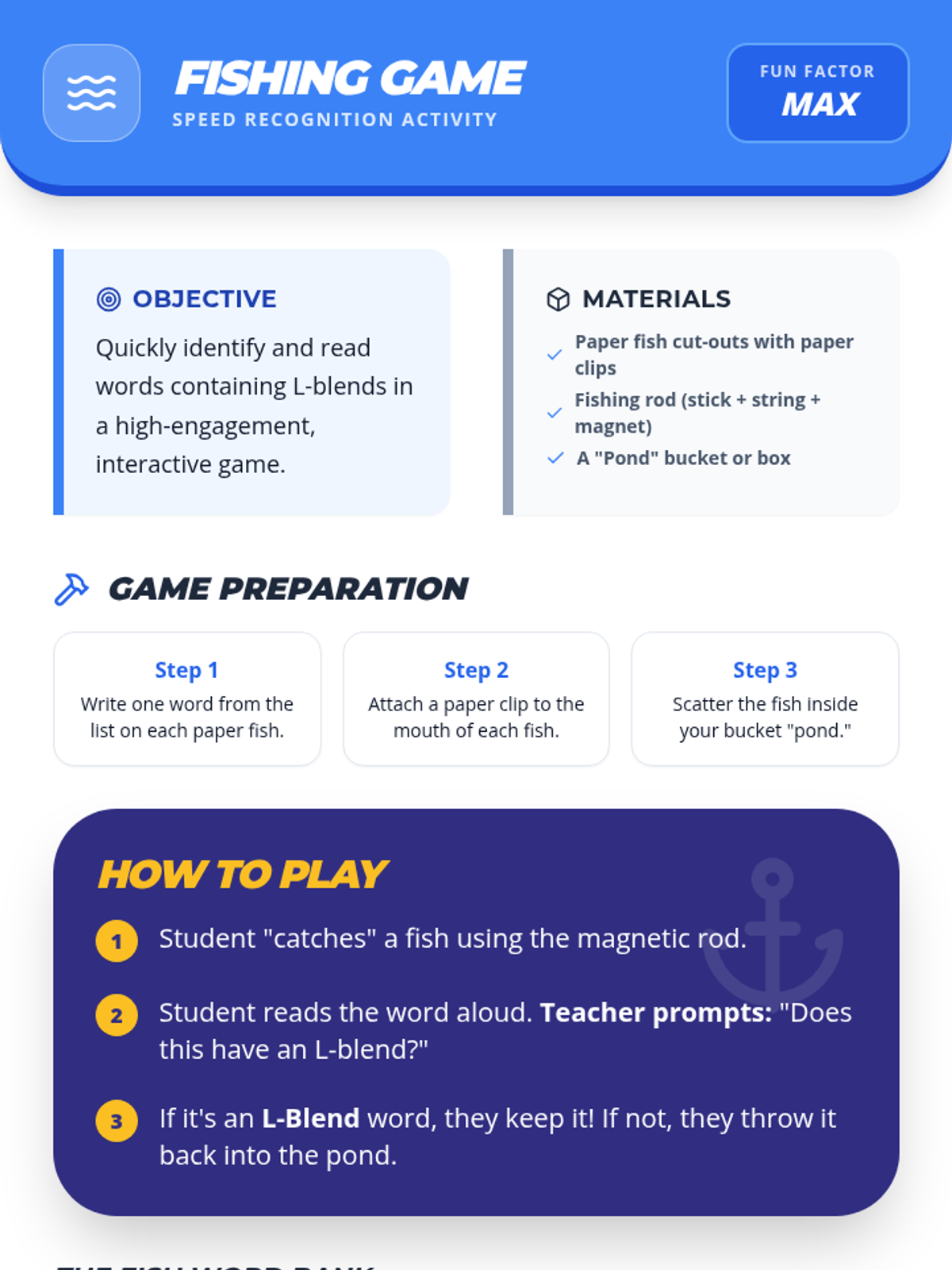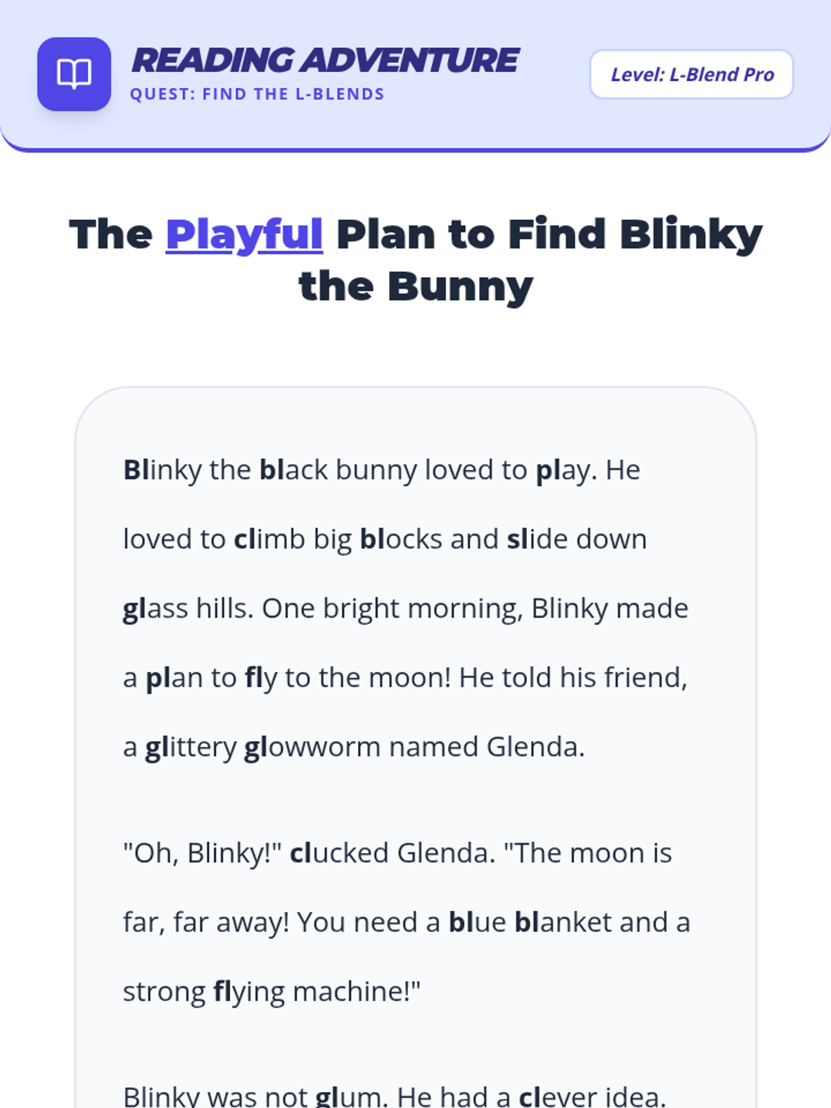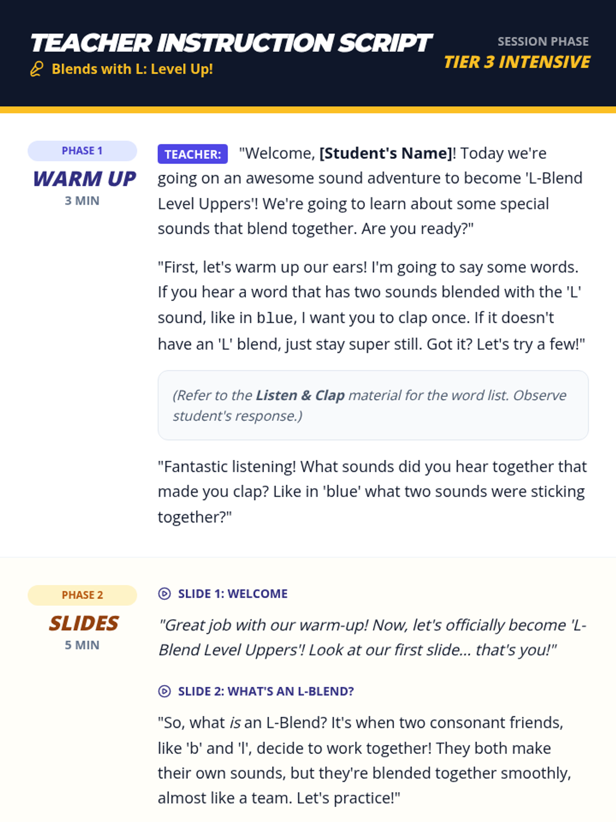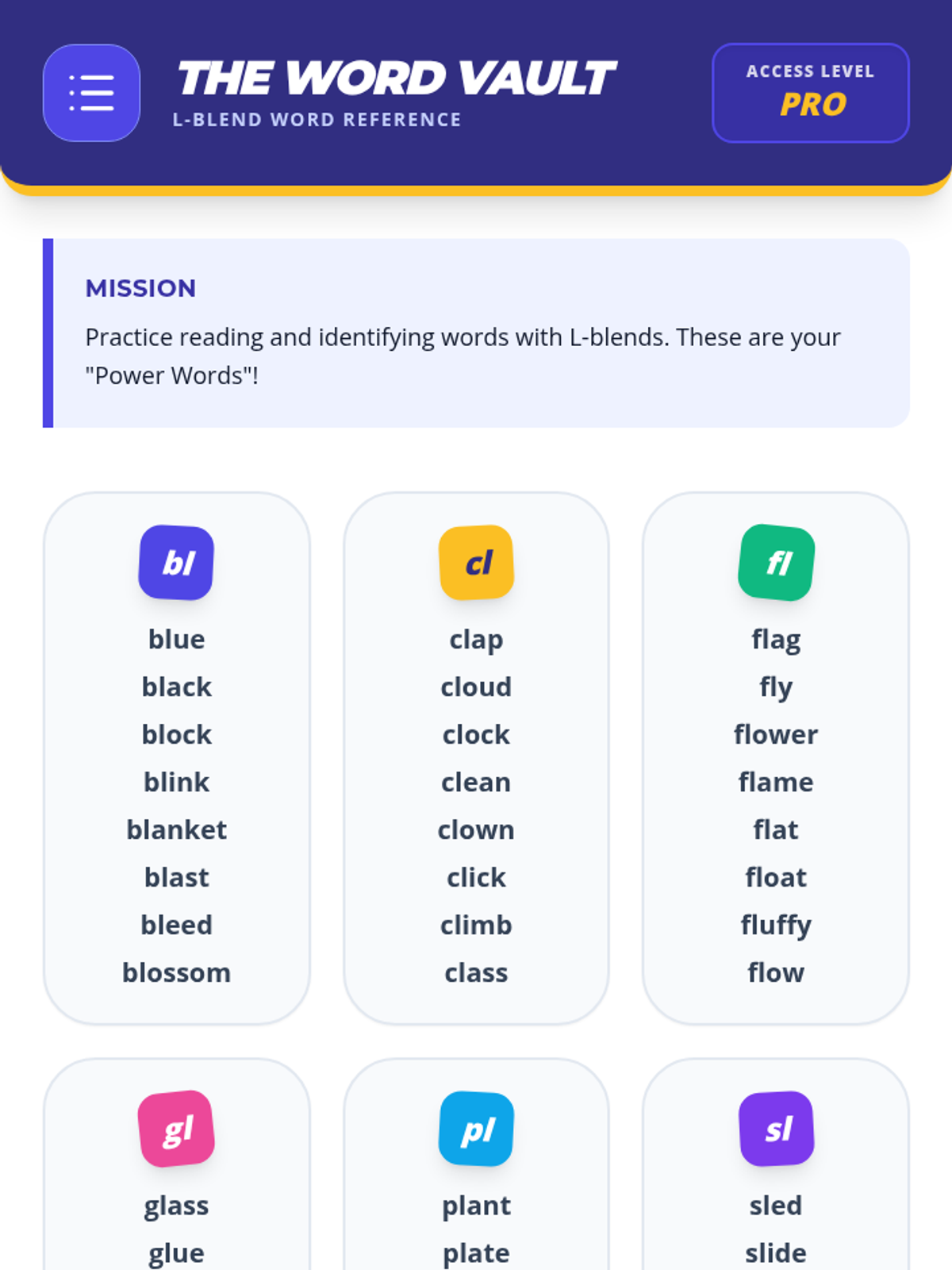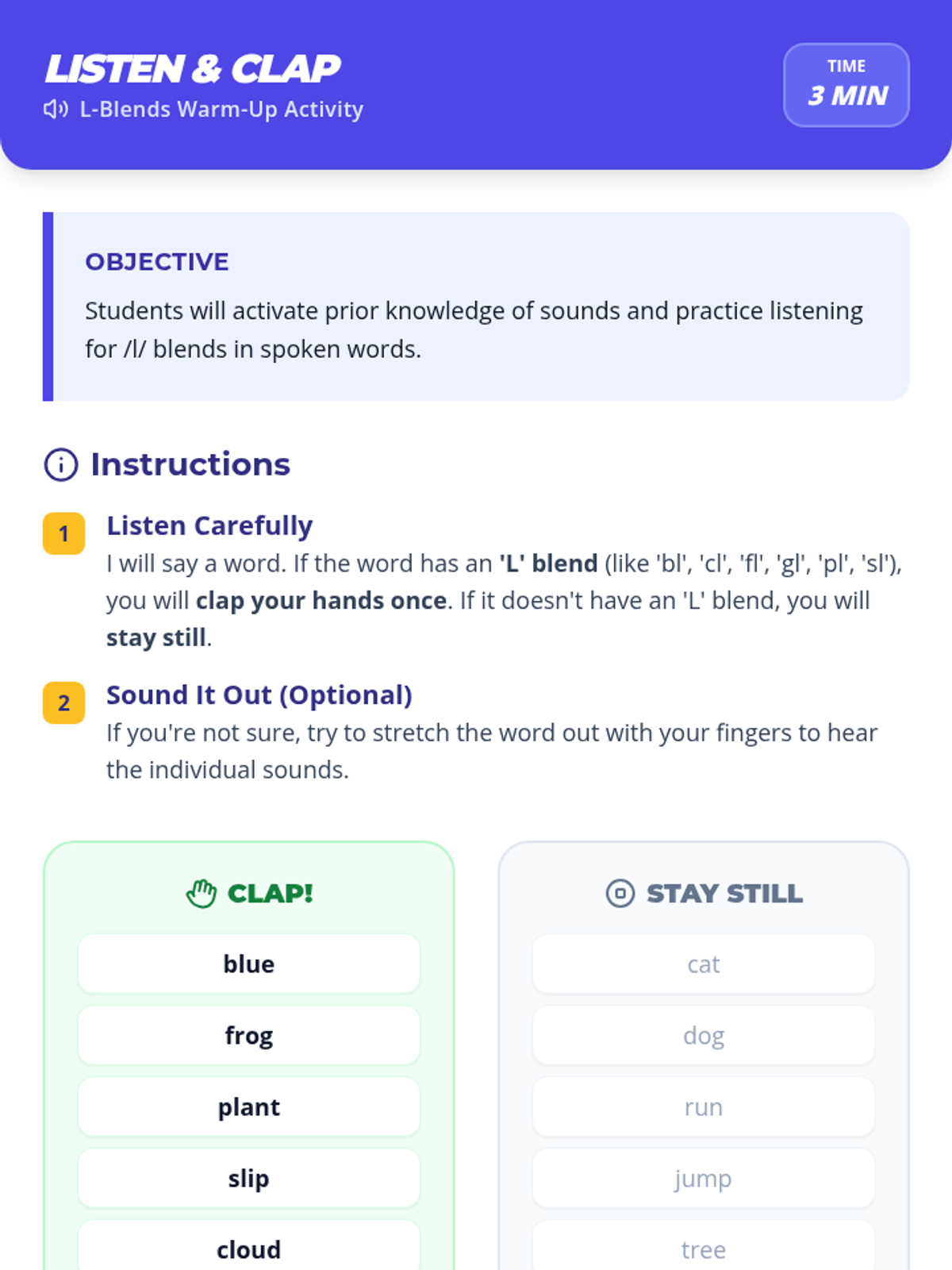 A 30-minute, multisensory lesson designed for a 7-year-old student with ADHD and dyslexia to master consonant 'l' blends using interactive 'Level Up' themed activities.