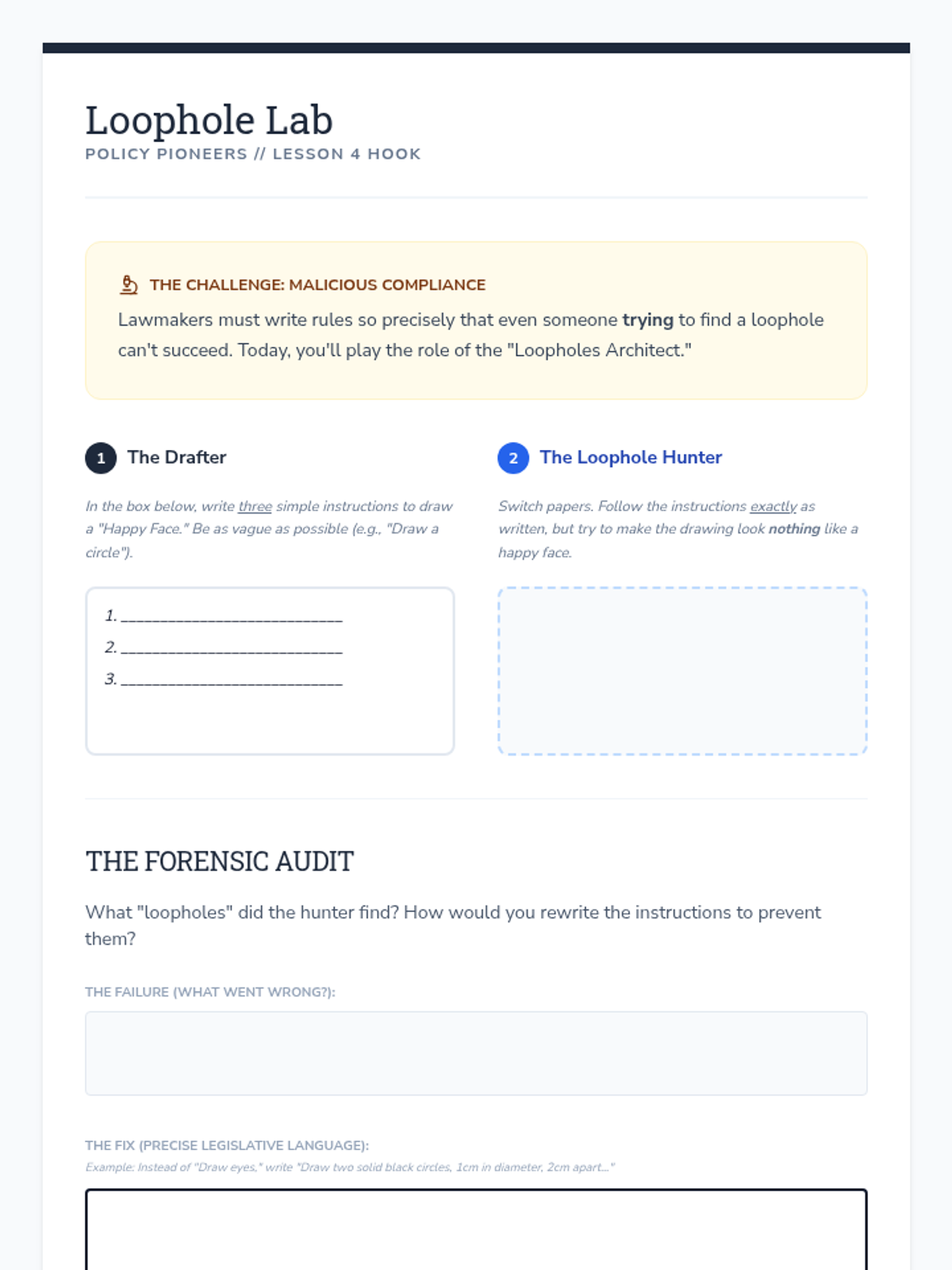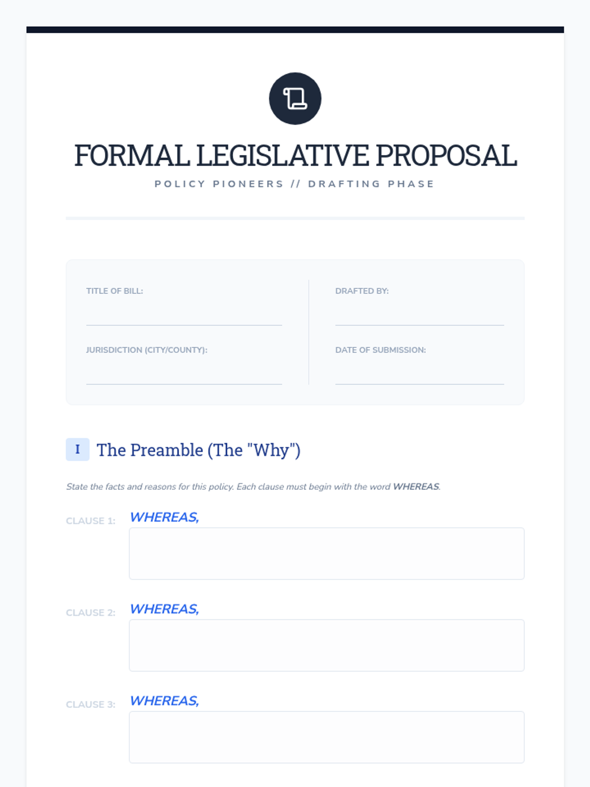 Students master the technical skill of drafting legislative language, focusing on precision in 'whereas' and 'resolved' clauses to ensure effective implementation.