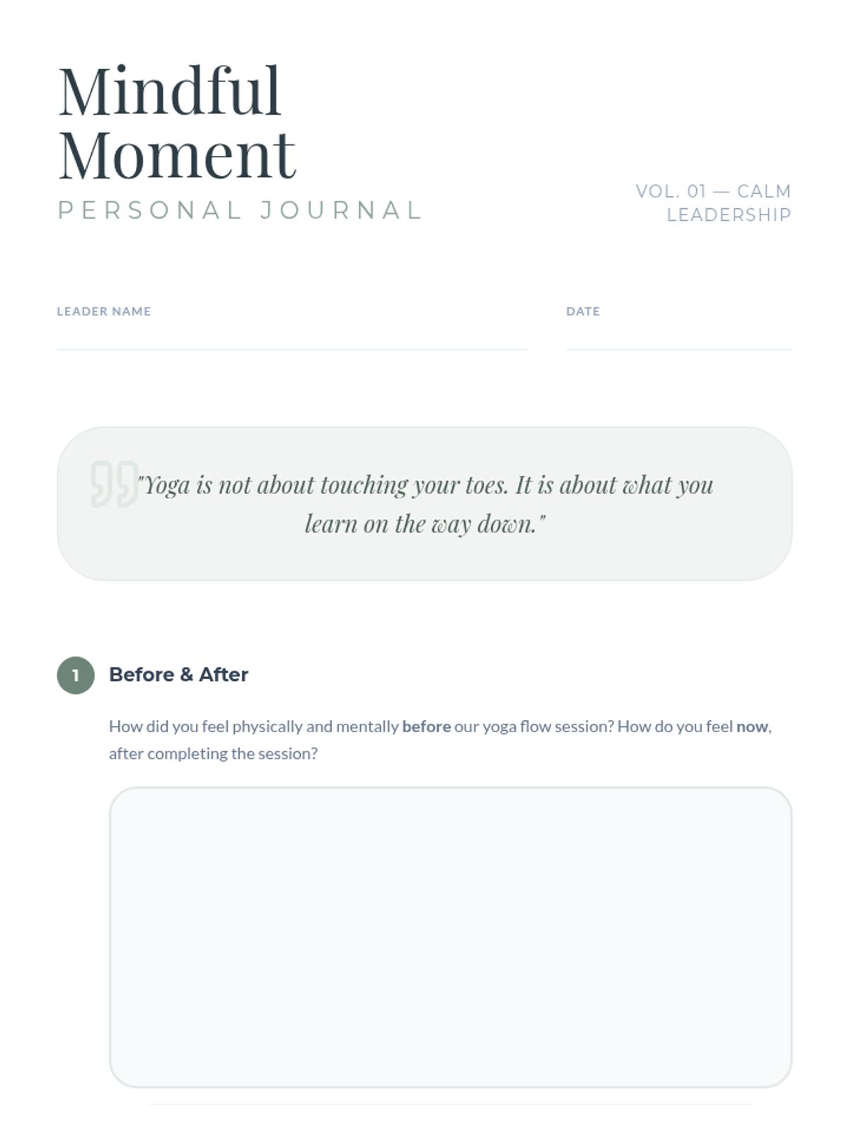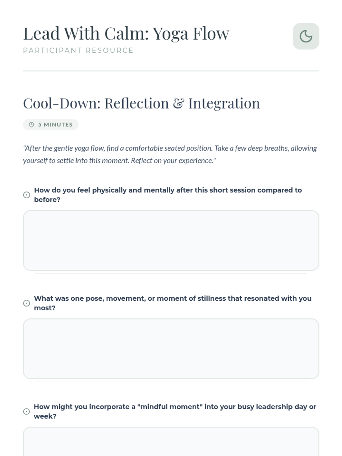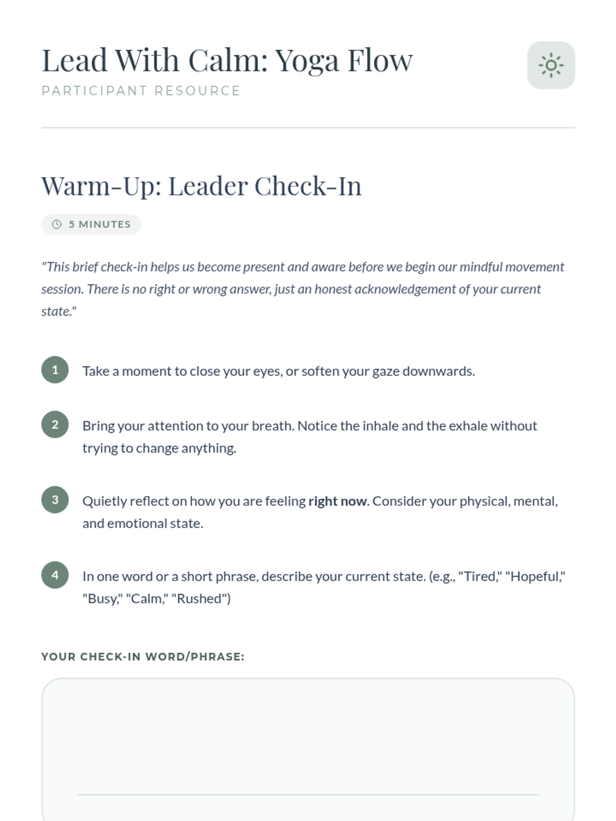 A 30-minute experiential session for school leaders that introduces basic yoga principles and a gentle movement flow to reduce stress and enhance leadership focus.