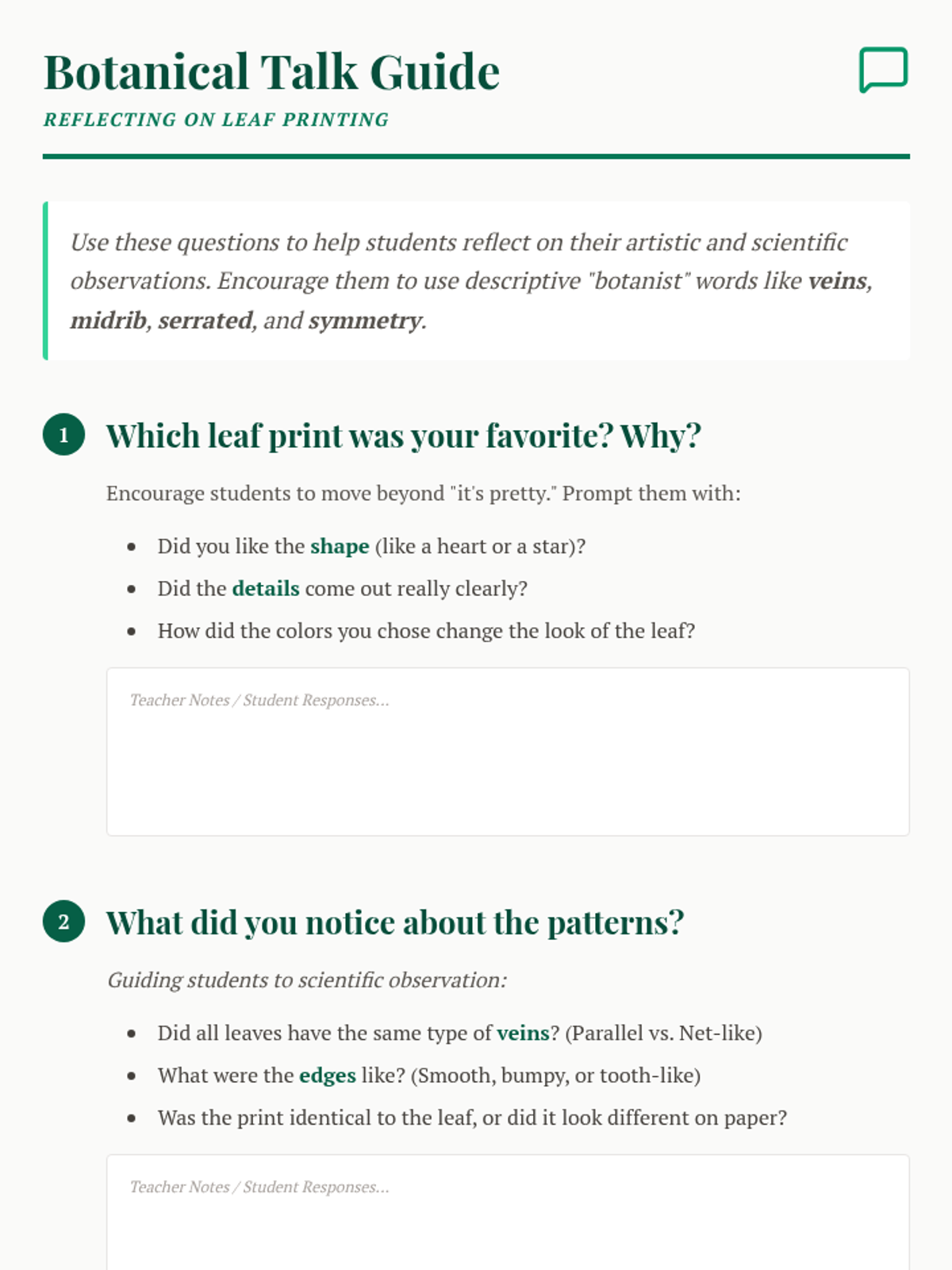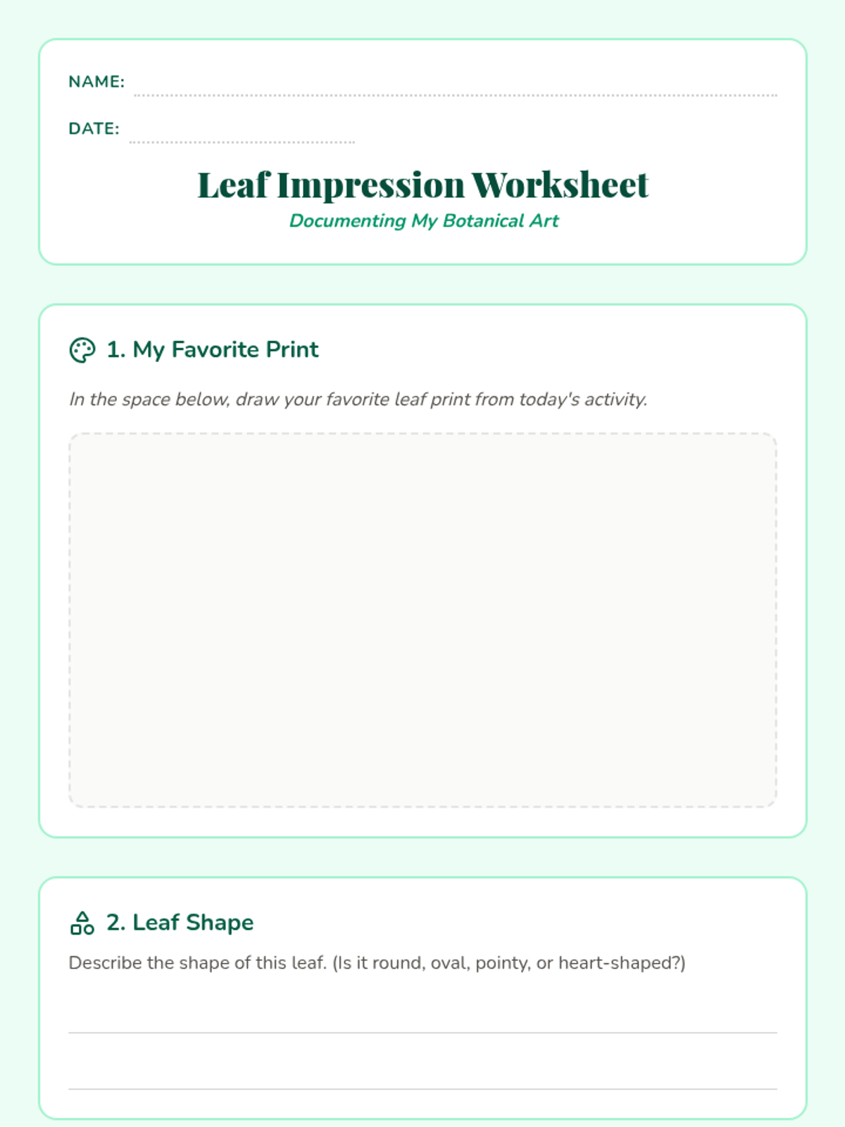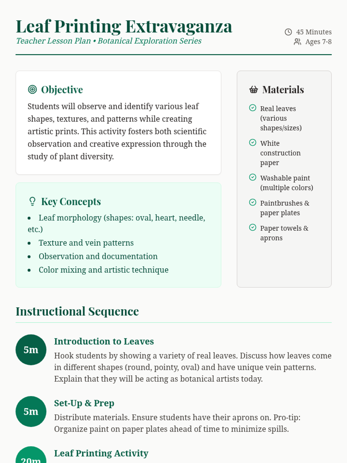 A hands-on art and science lesson where students explore the diversity of plant life through leaf prints, focusing on shapes, textures, and patterns.