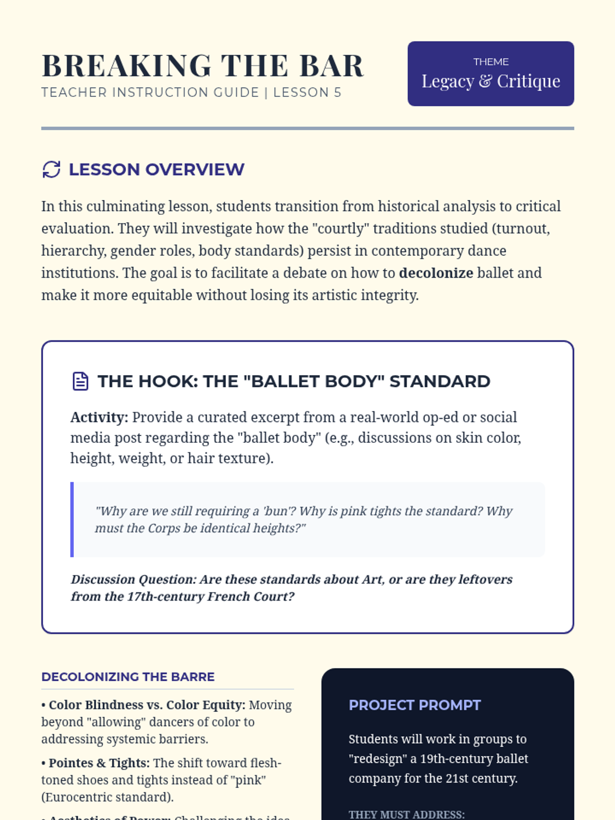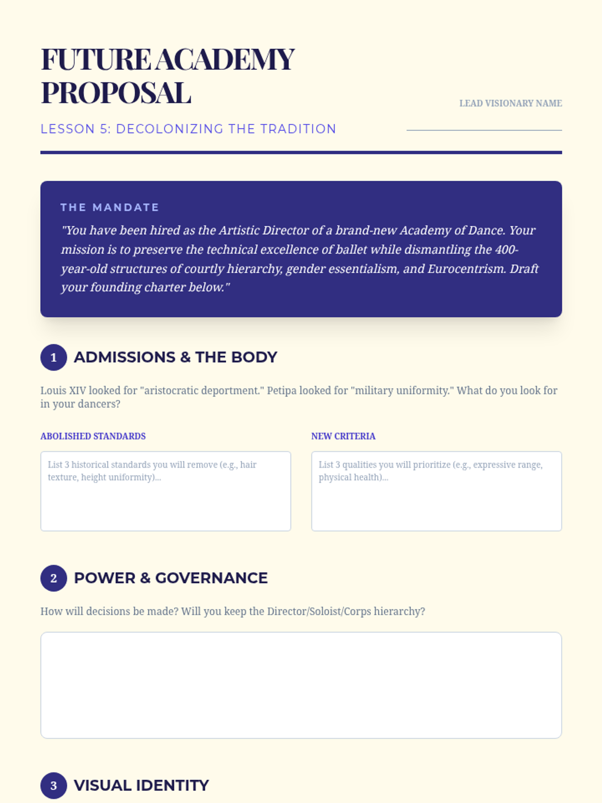 Critically evaluate the lasting impacts of court traditions on modern dance institutions and explore contemporary movements to decolonize and diversify the art form.
