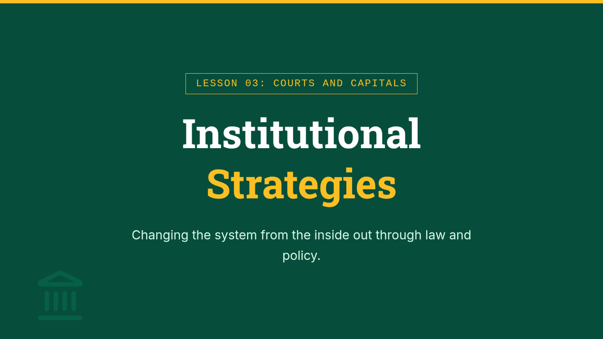 An exploration of institutional strategies for change, contrasting street-level activism with the NAACP's legal strategy and the 19th Amendment's lobbying.
