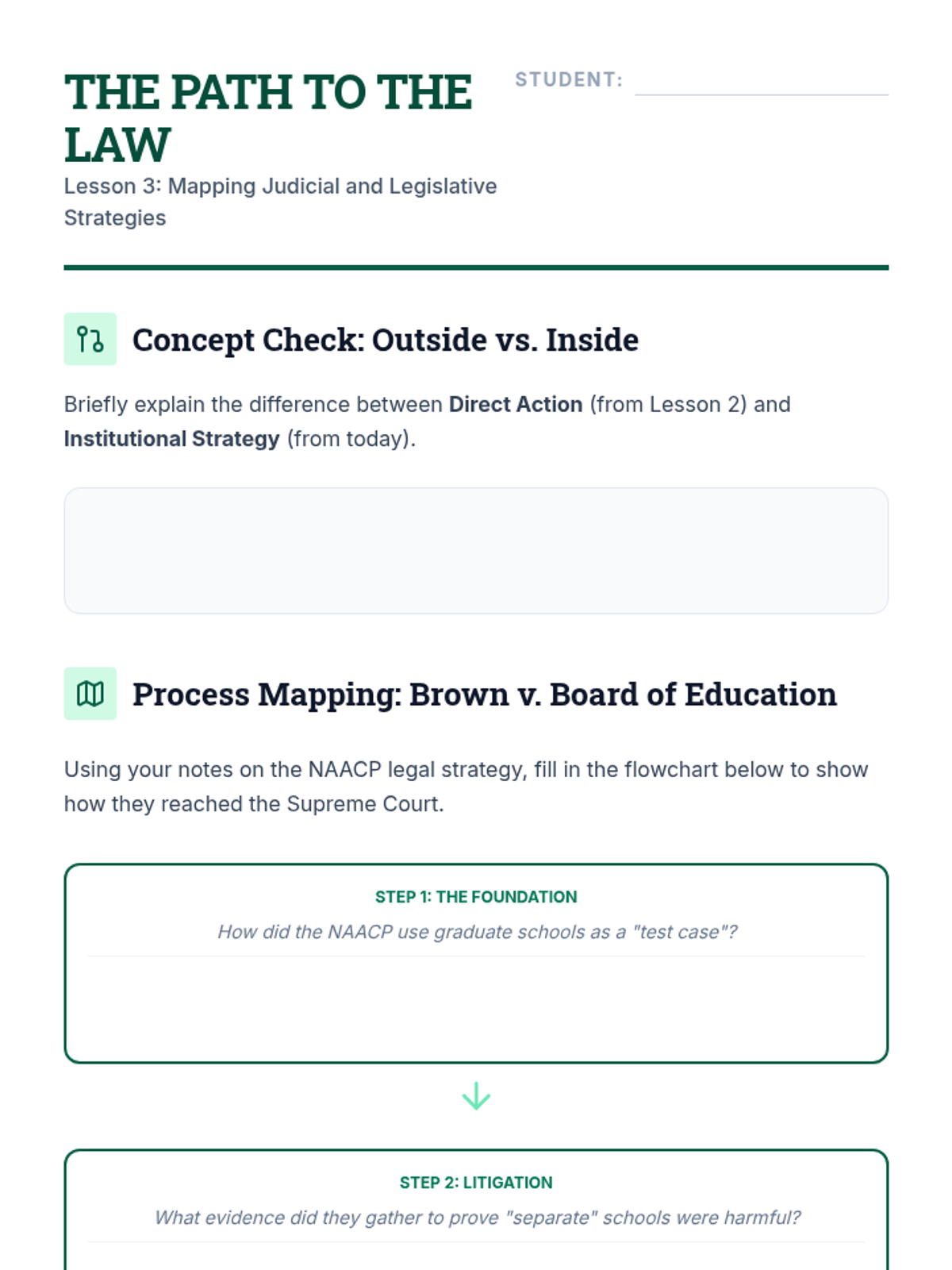 A lesson exploring the struggle for school equality in the United States, focusing on key legal cases and the brave students who led the way for integration.