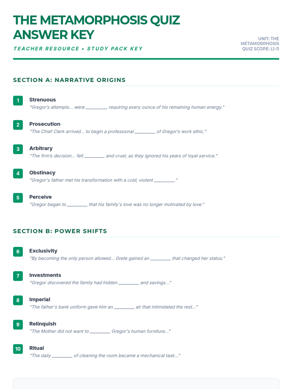 Students analyze the Chief Clerk's dialogue and how he uses corporate language to minimize Gregor's humanity and maximize his perceived 'laziness'.