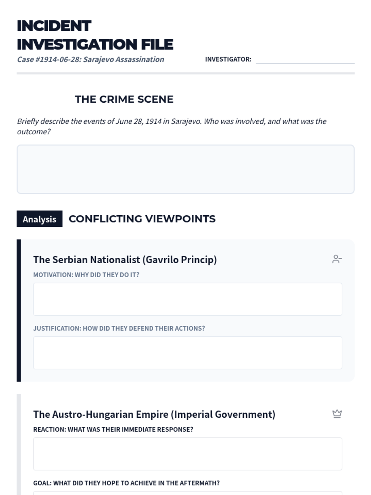 Investigate the assassination of Archduke Franz Ferdinand through a multi-perspective case study to understand the immediate trigger of the war.