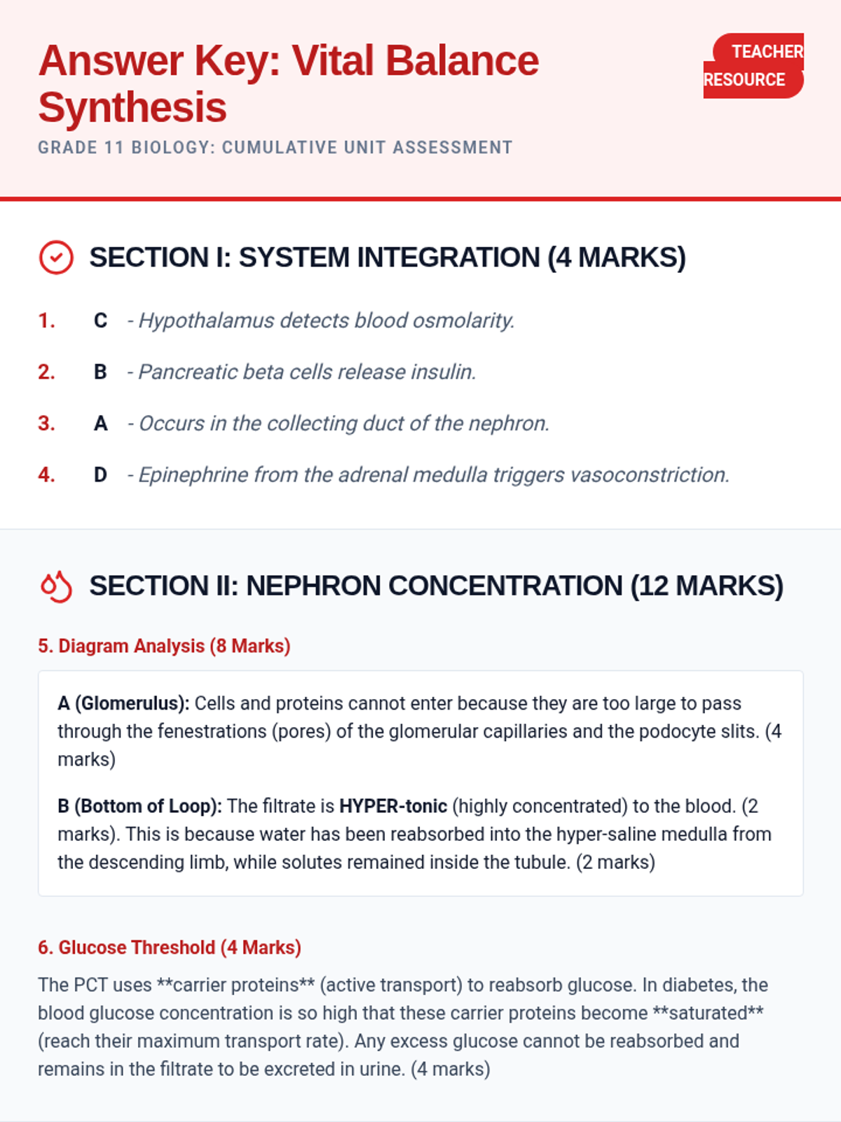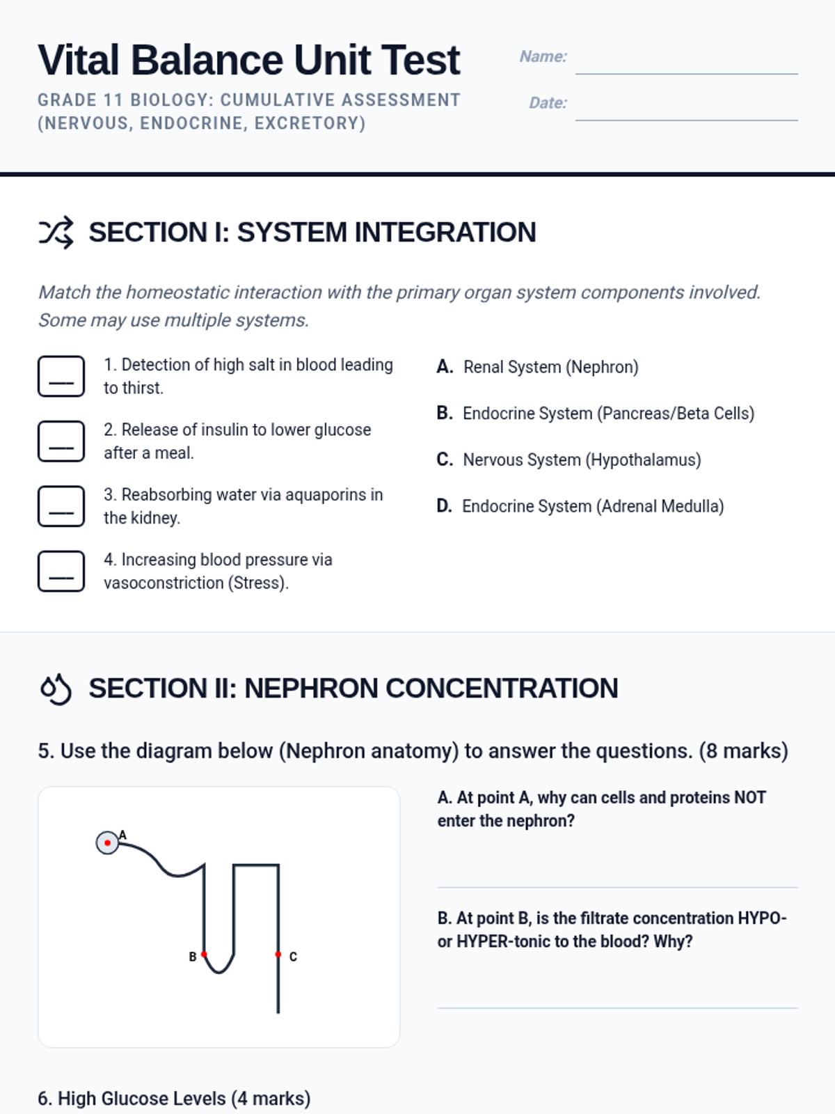 A comprehensive final assessment for the unit, synthesizing the interactions between the nervous, endocrine, and excretory systems in maintaining homeostasis.