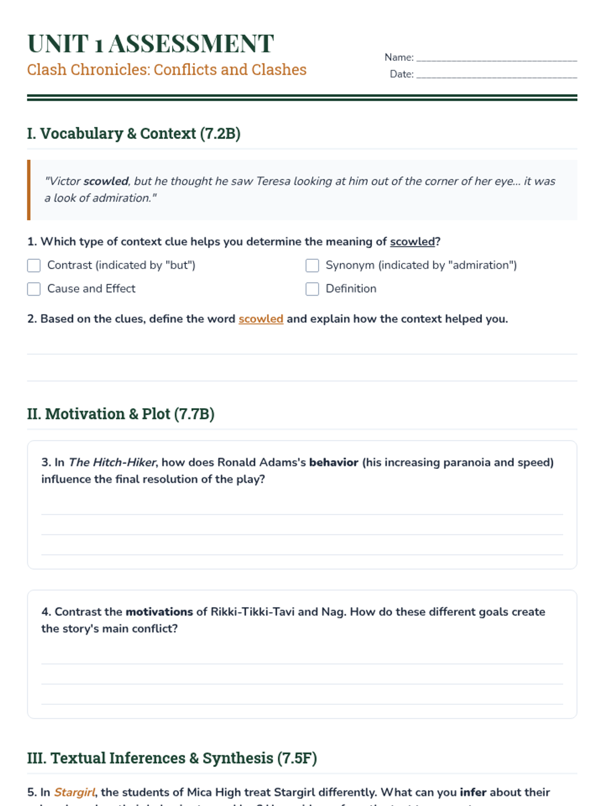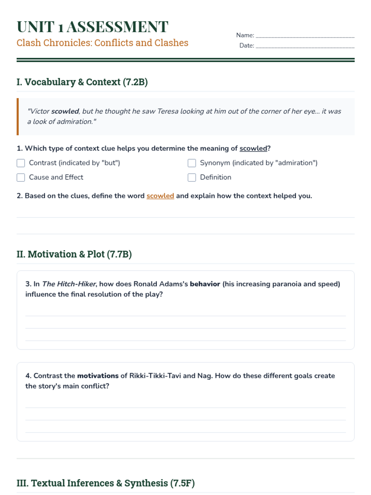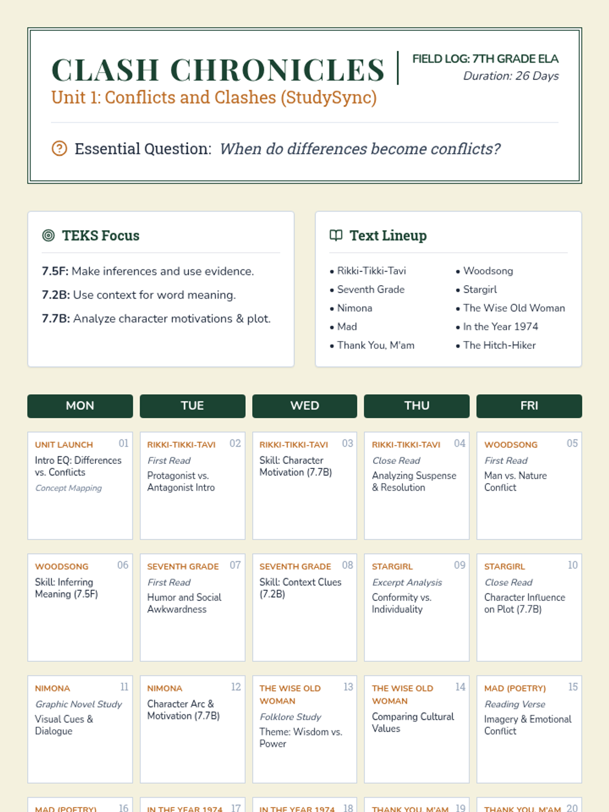 Intro to Unit, Essential Question, and analyzing character motivation in Kipling's 'Rikki-Tikki-Tavi'.