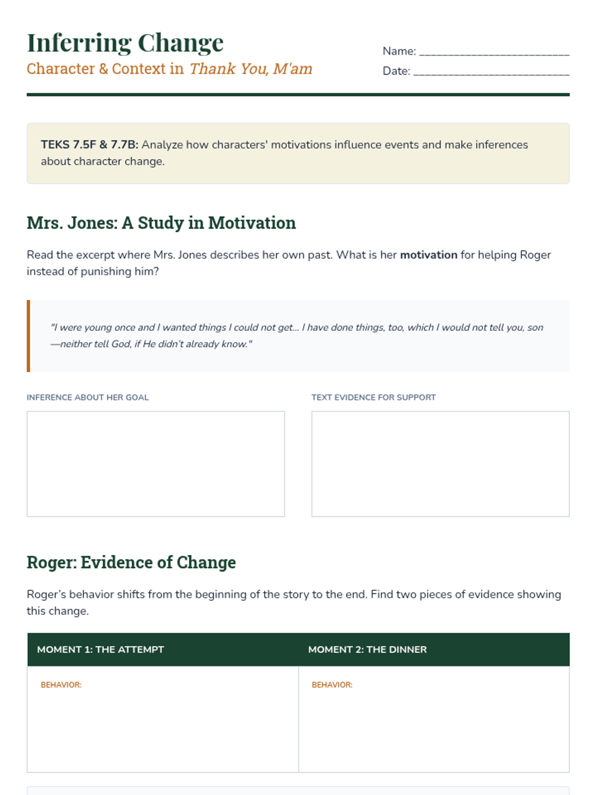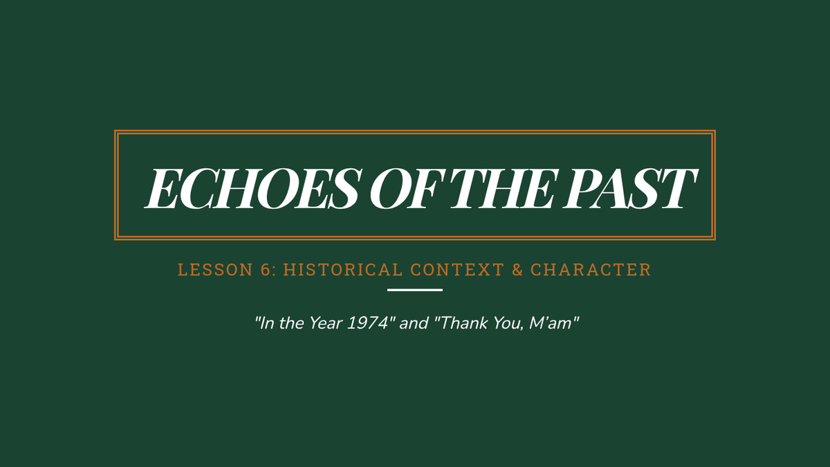 Investigating the impact of the past on the present through 'In the Year 1974' and 'Thank You, M’am'.