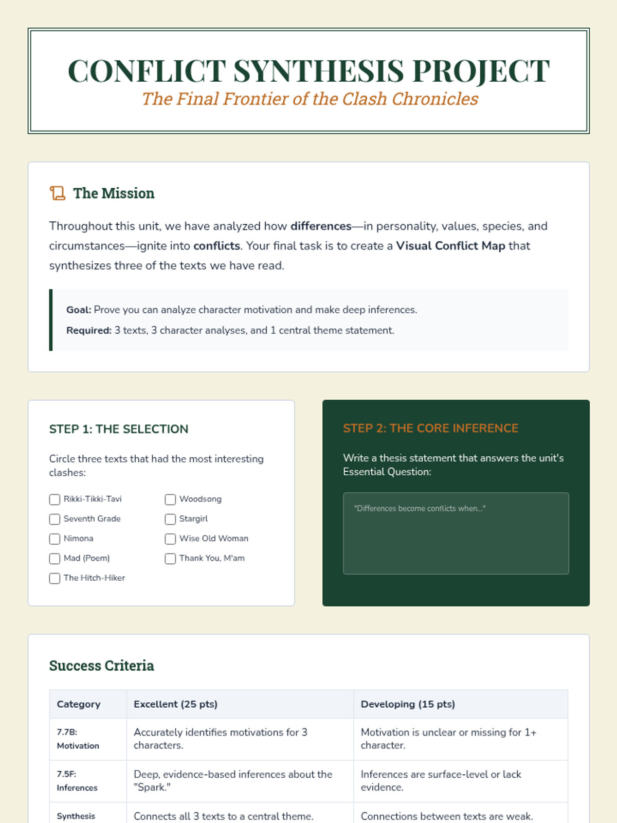 Synthesizing unit themes and essential questions in a final assessment.