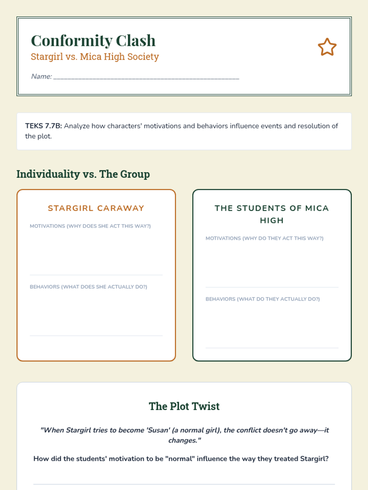 Exploring social conflict and the pressure to conform in 'Seventh Grade' and 'Stargirl'.