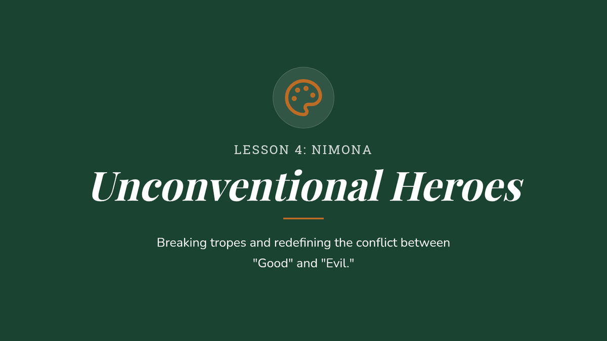 Breaking tropes and analyzing character complexity in the graphic novel 'Nimona'.