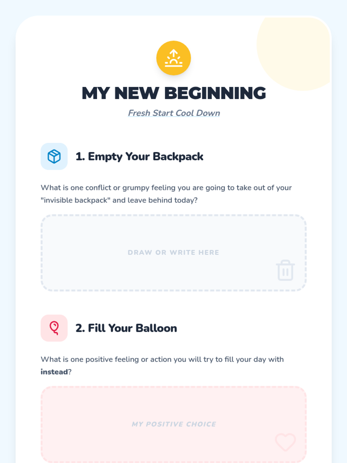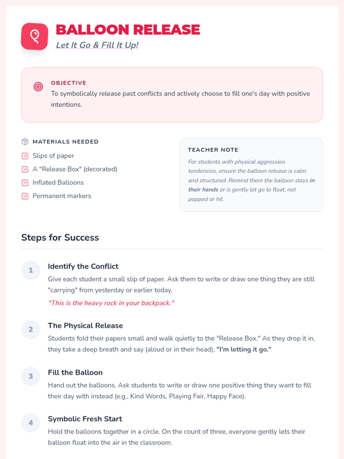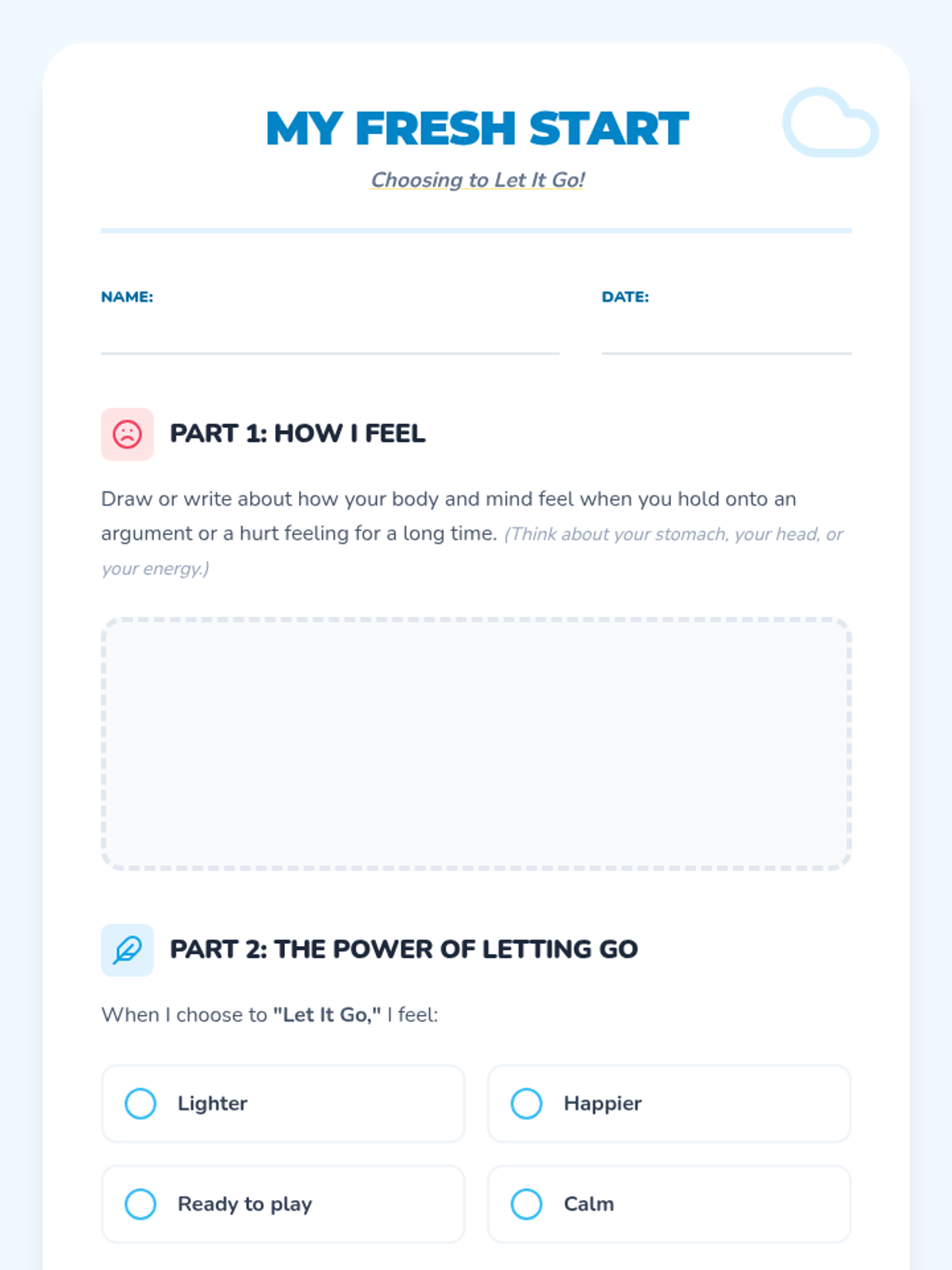A 30-minute social-emotional learning lesson for 2nd graders to help them resolve conflicts, move past disagreements, and embrace fresh starts through symbolic activities and guided discussion.