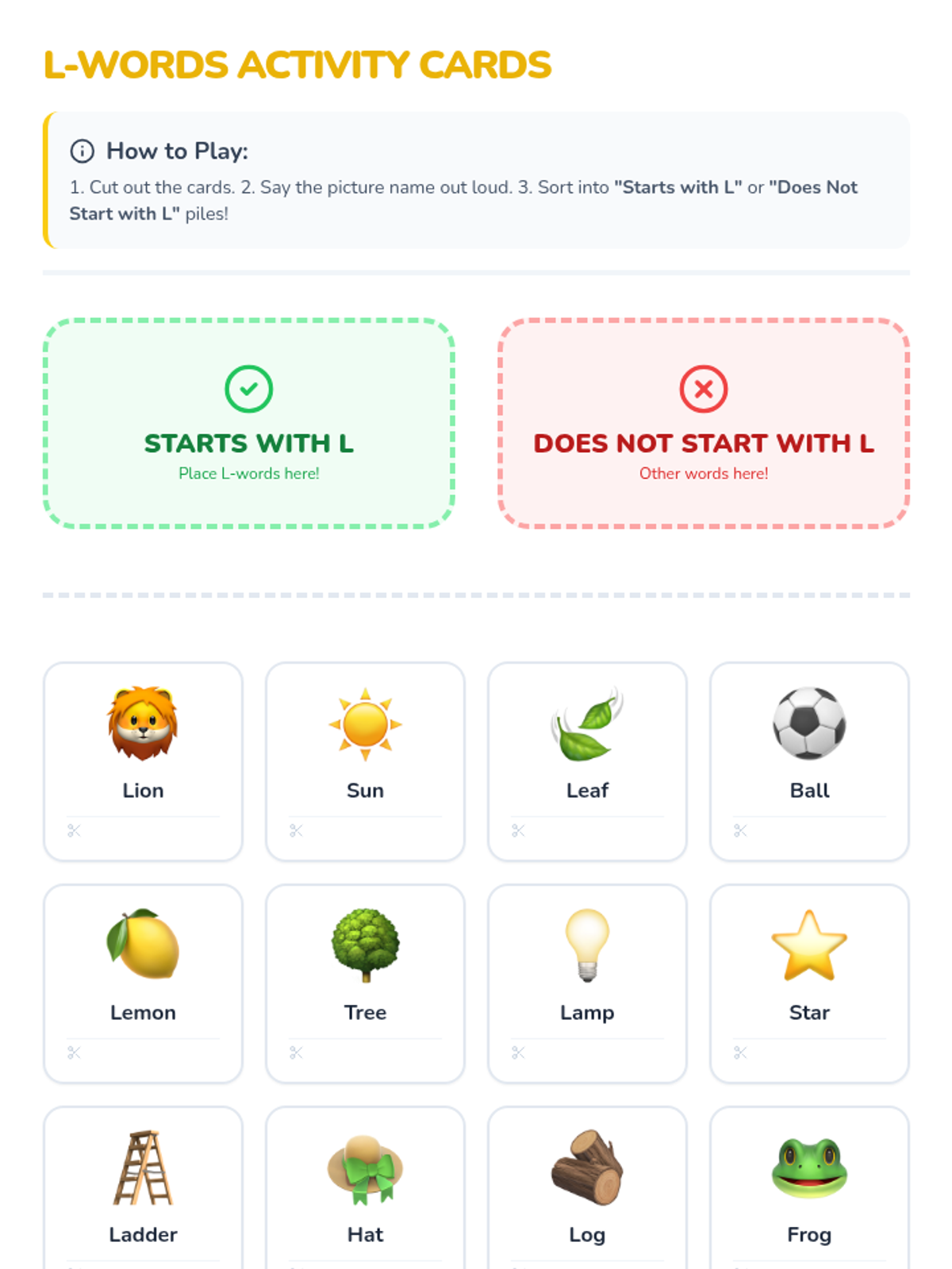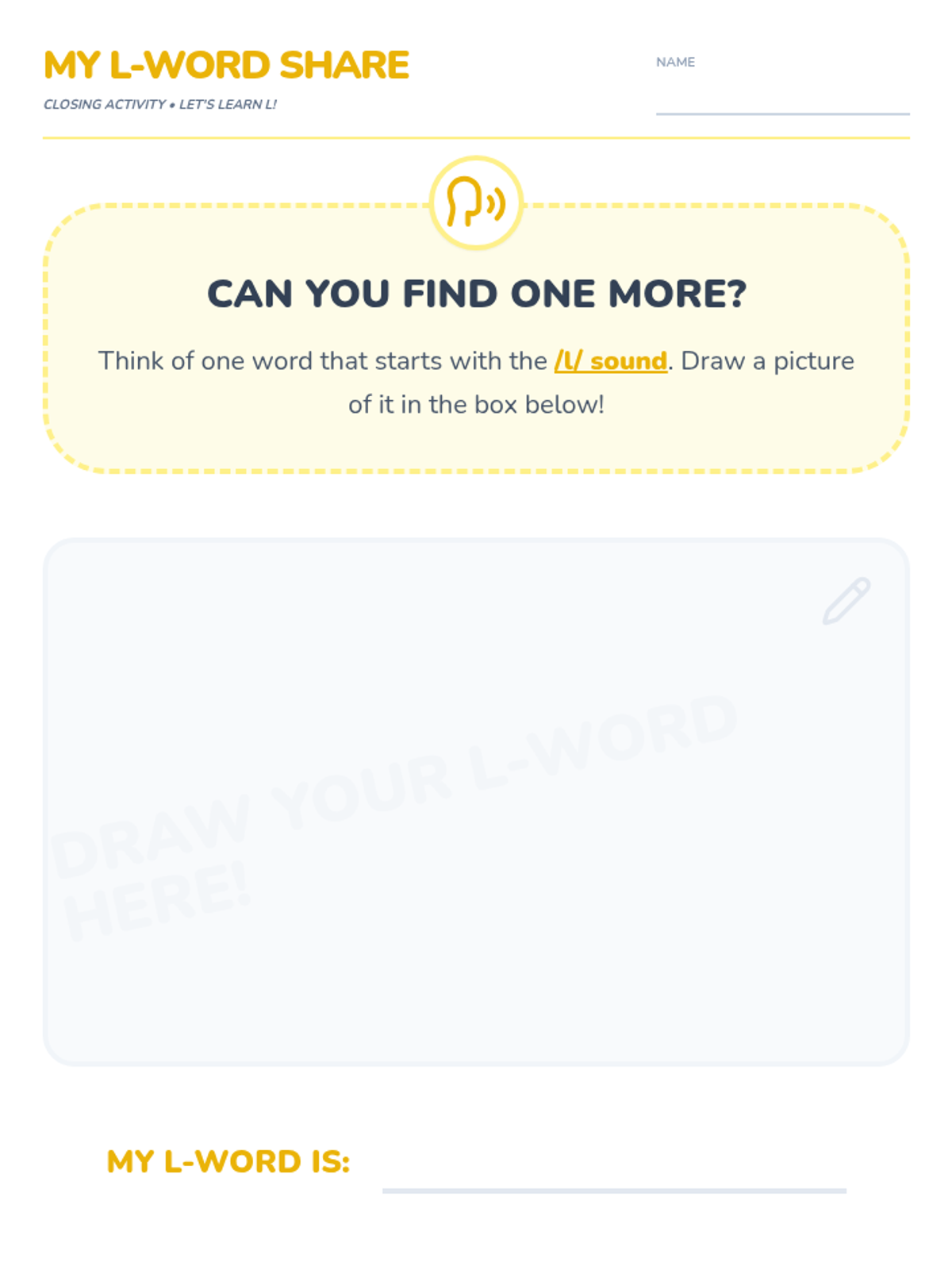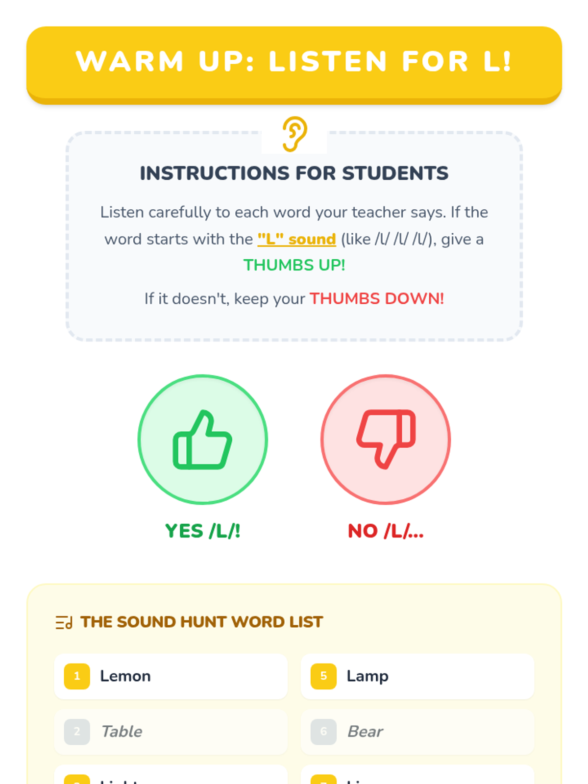 A fun, 30-minute introductory lesson for kindergarteners to recognize and produce the 'L' sound. Students will engage with visual slides, sorting activities, and hands-on tracing to master the /l/ phoneme.
