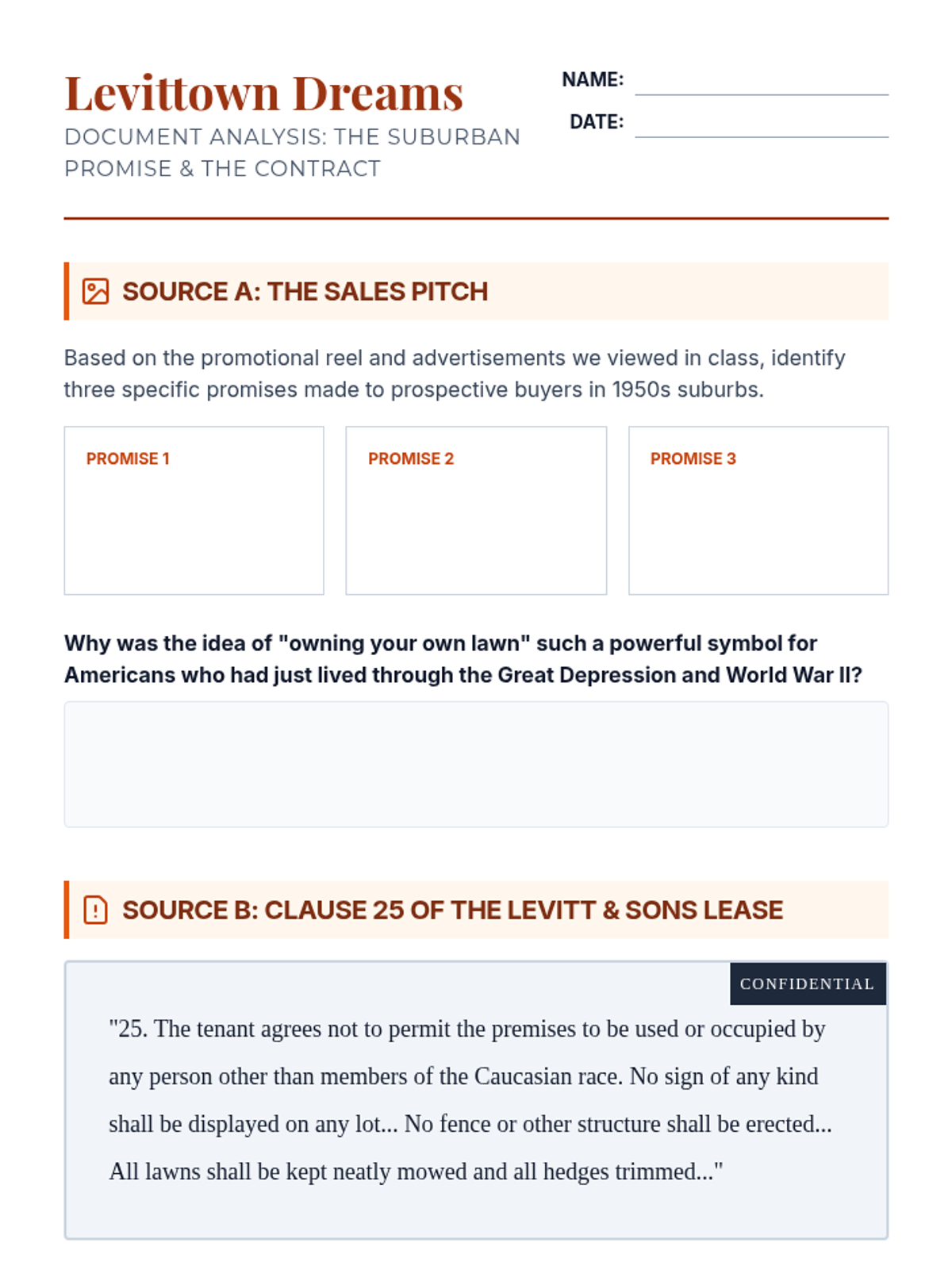 Focuses on the development of Levittown, the growth of car culture, and the legal mechanisms of redlining that shaped the American landscape.
