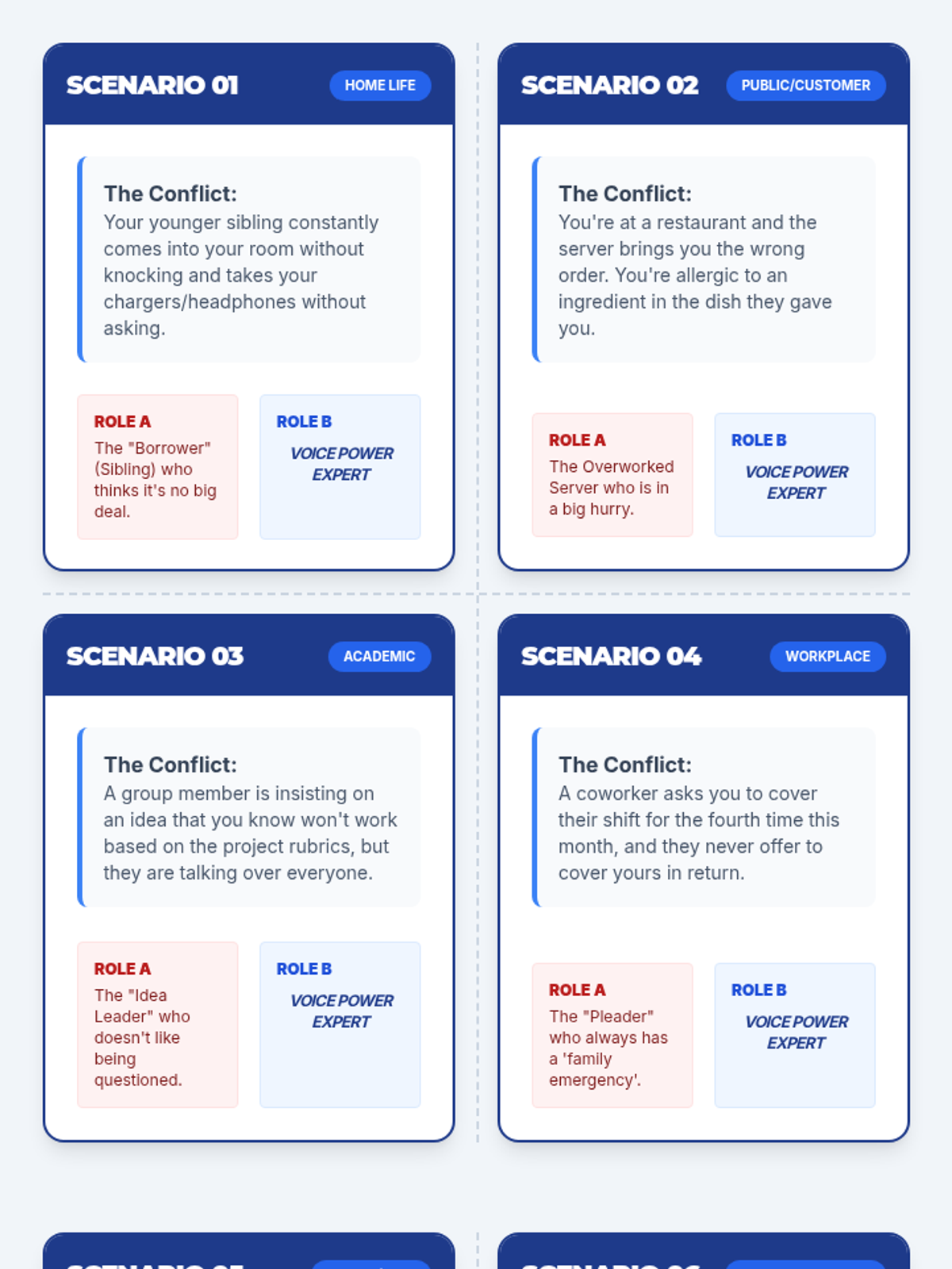 A collection of visual tools and communication strategies designed to help students navigate family conflict, manage emotional triggers, and use de-escalation techniques while maintaining respectful boundaries.