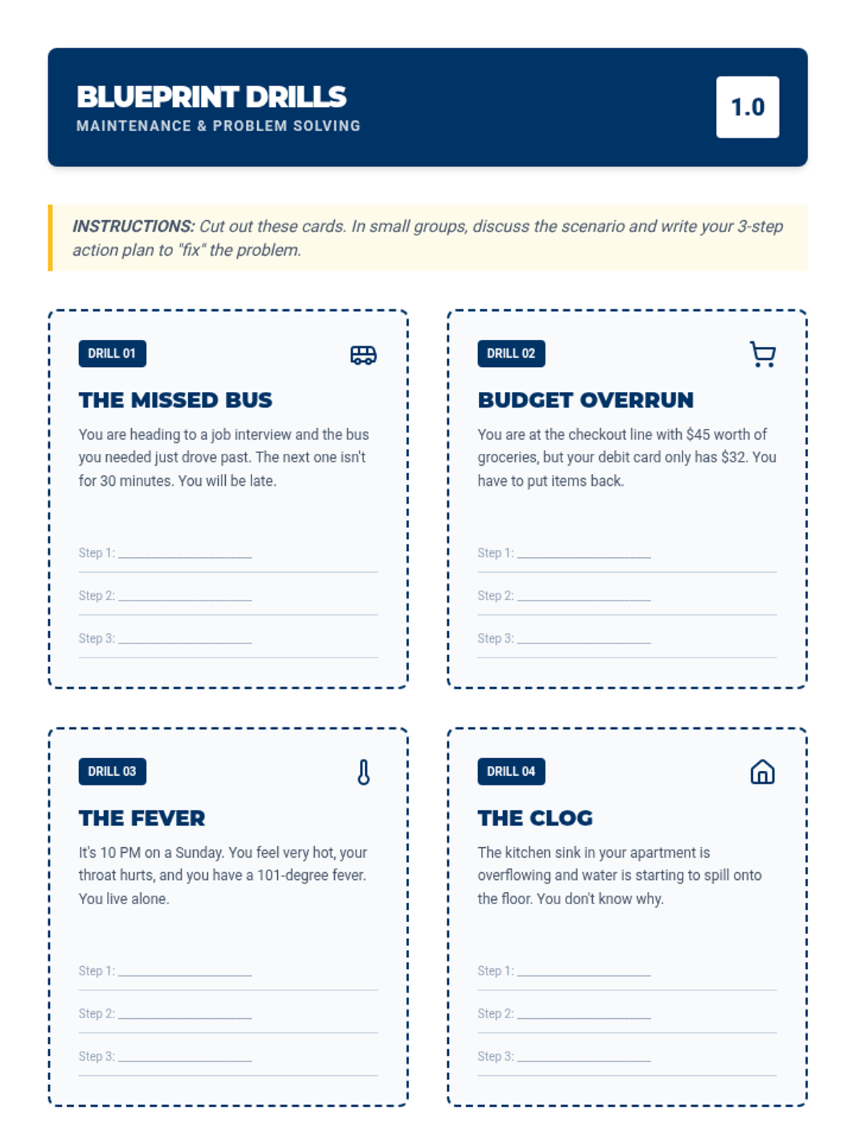 A lesson designed to empower students to understand their IEP goals and practice self-advocacy through scenario-based roleplay. Students will learn the 'Blueprinting' method for communicating their needs effectively to teachers and staff.