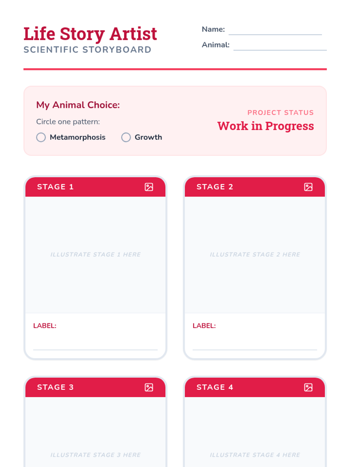 A cumulative project where students create a storyboard illustrating the life cycle of a chosen animal.