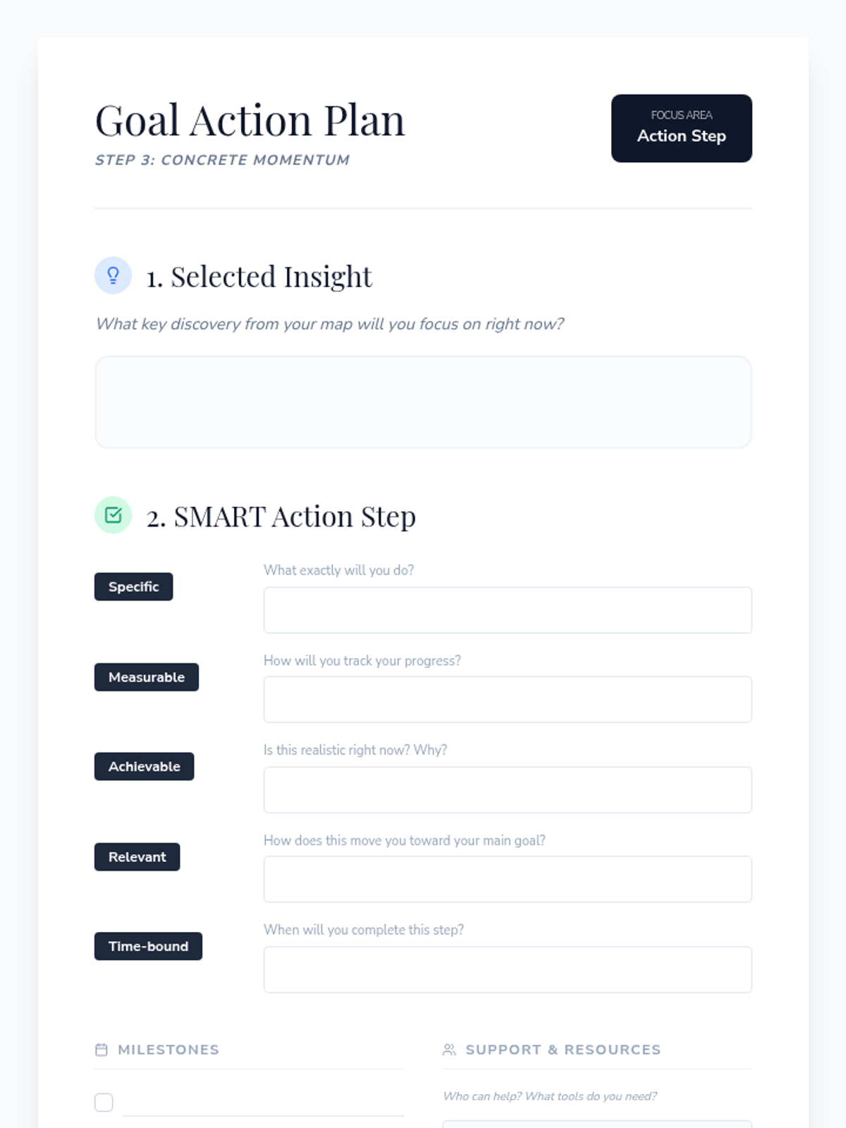 Focuses on overcoming procrastination and "stuckness" by breaking down complex tasks into manageable, non-intimidating units using the "Breakdown Blueprint."