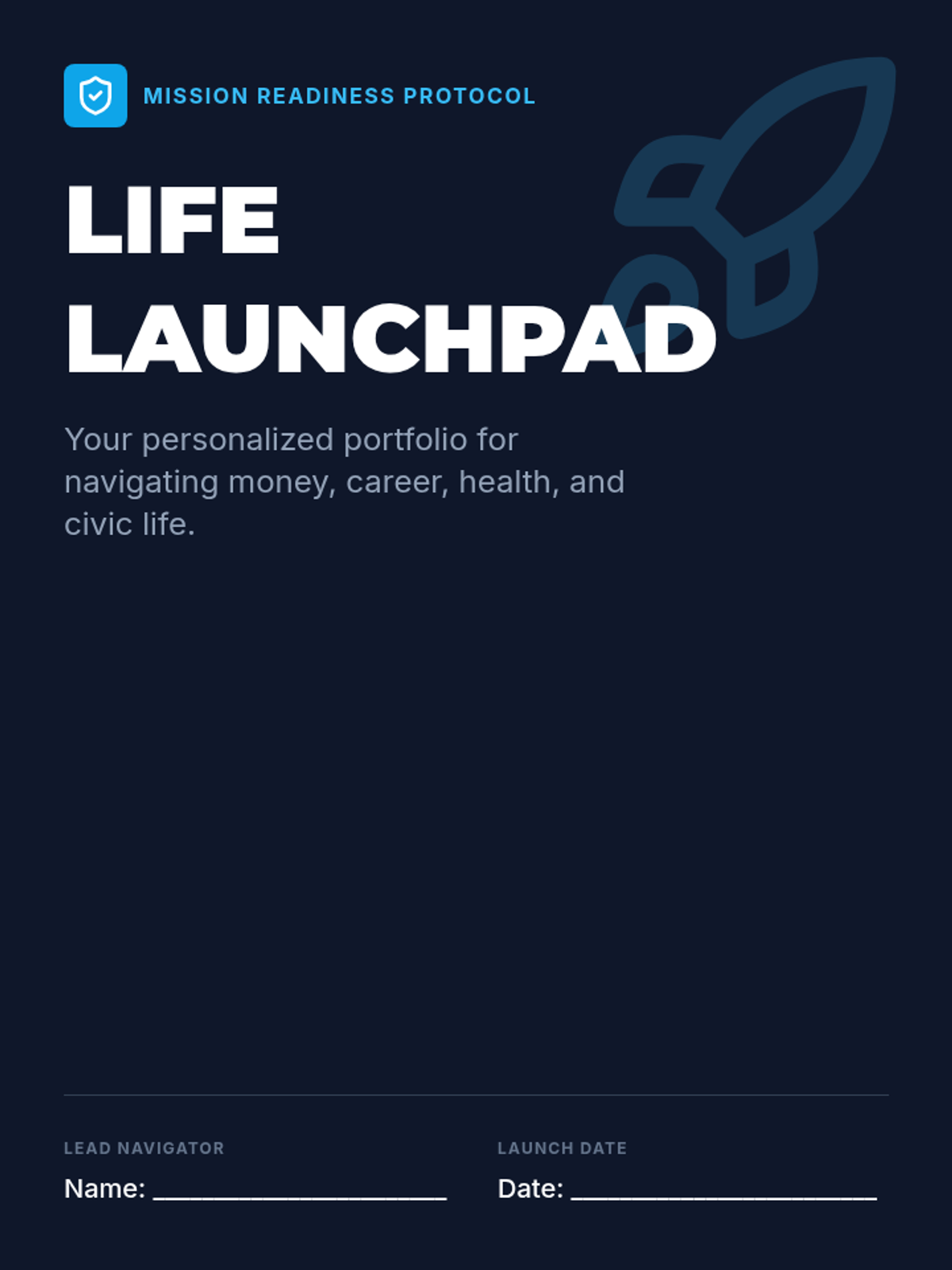 A comprehensive transition-to-adulthood curriculum covering financial literacy, career planning, health navigation, and civic engagement. Students build a personal 'mission log' portfolio to prepare for independent life.