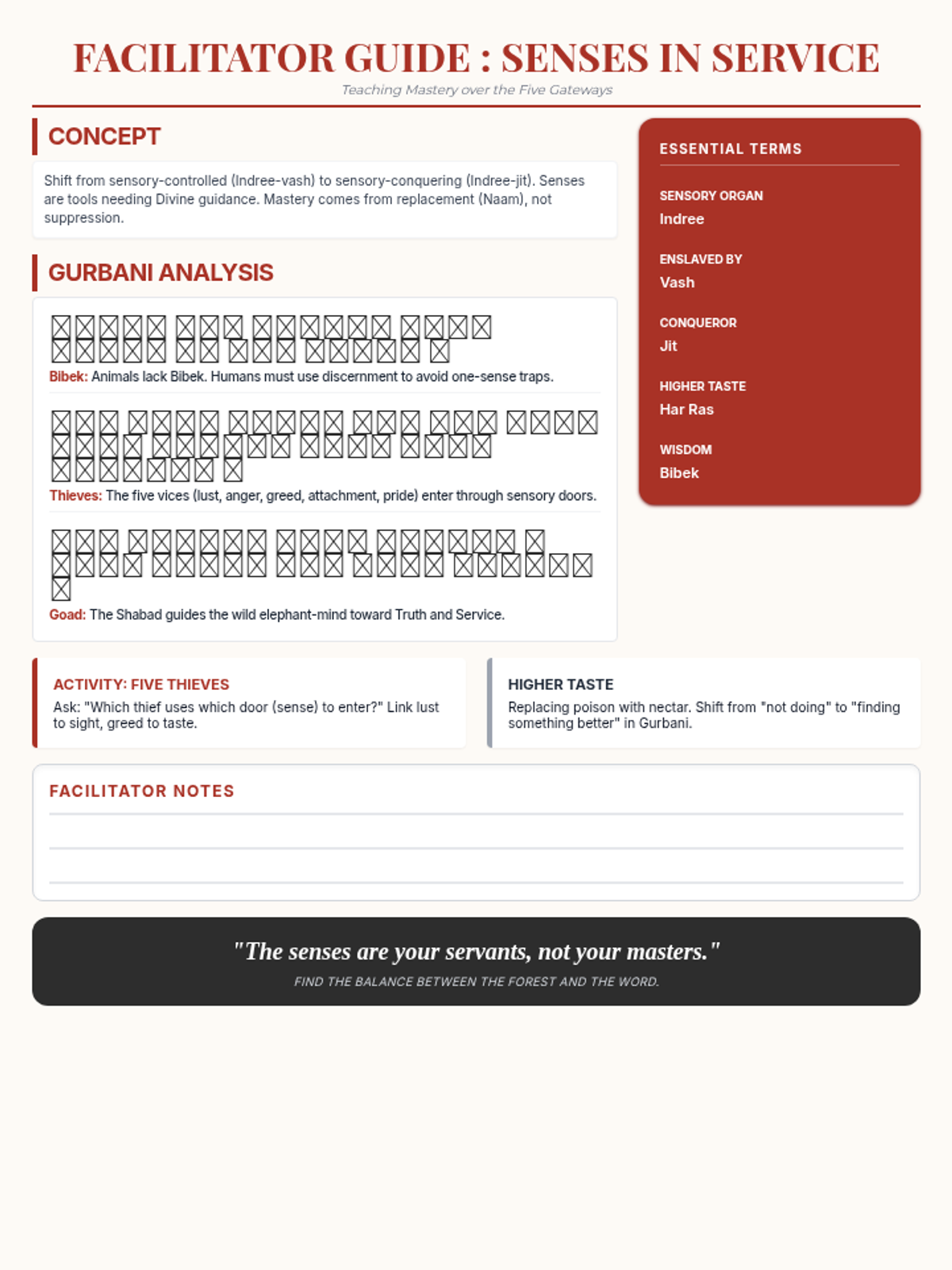 This lesson explores the Gurmat perspective on the five senses, moving from sensory bondage to spiritual mastery through the teachings found in the 'Slave to the Senses' discourse.