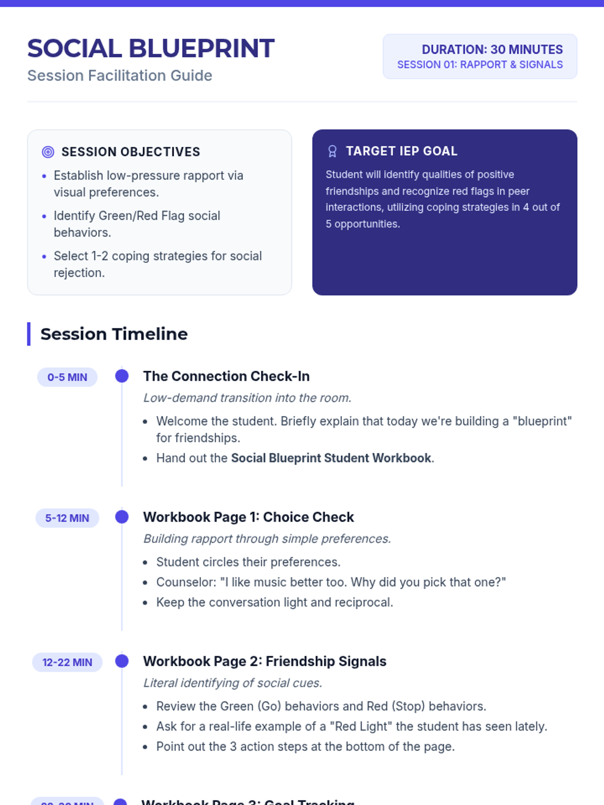 A 30-minute counseling session focused on rapport building and initial goal setting for high-functioning autistic high school students, utilizing visual preferences to bridge into social dynamics.