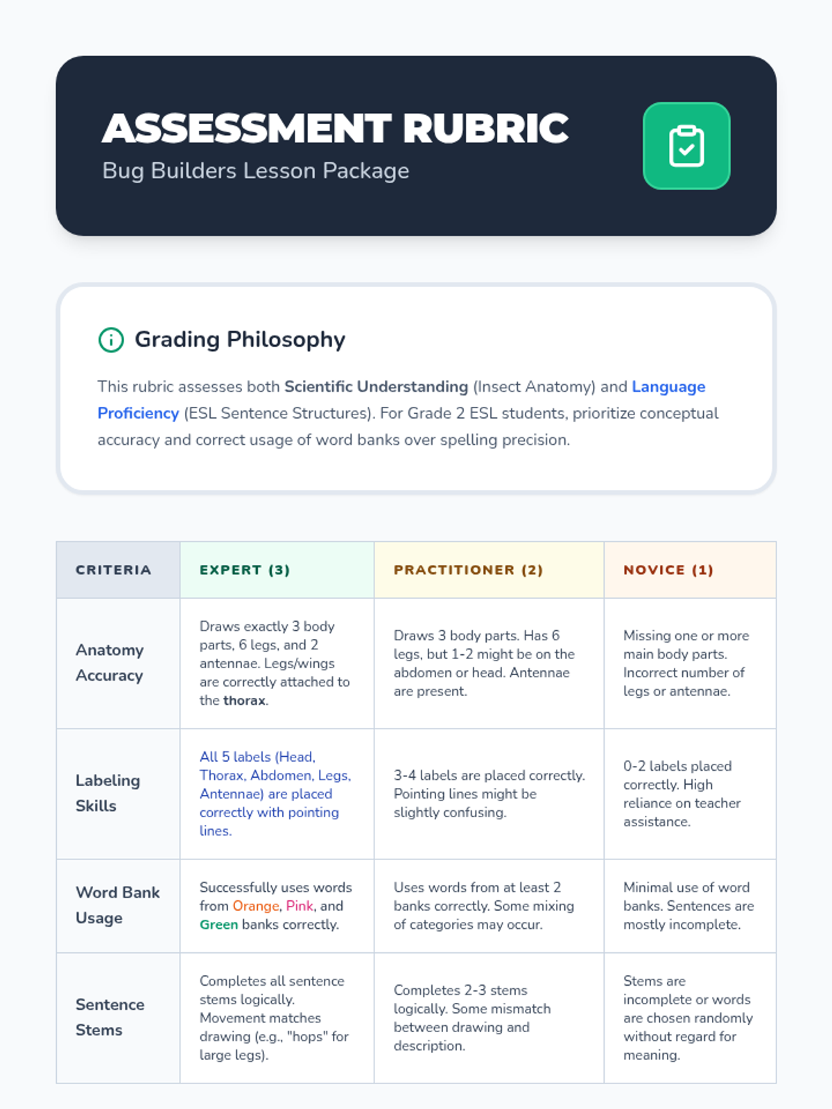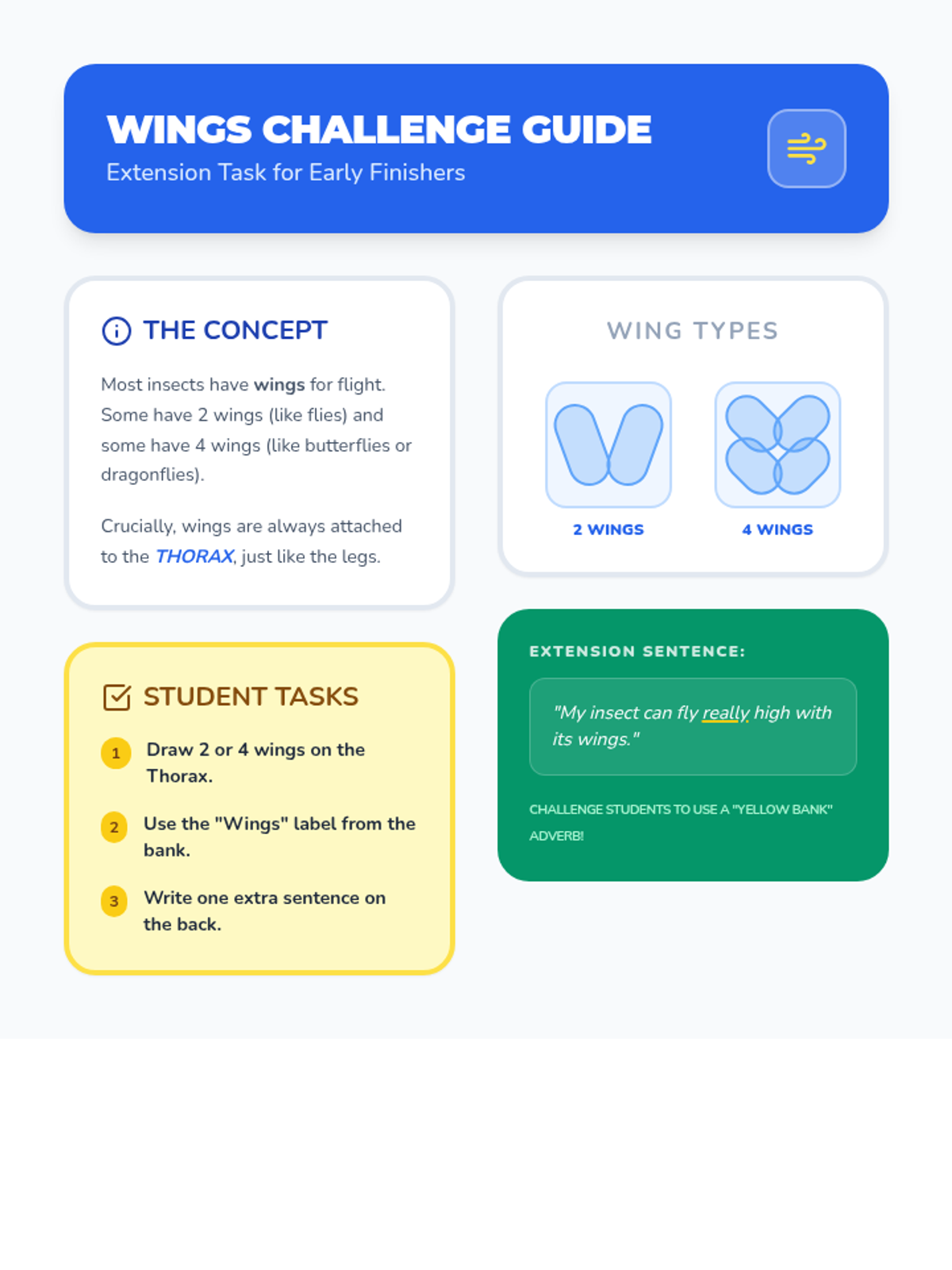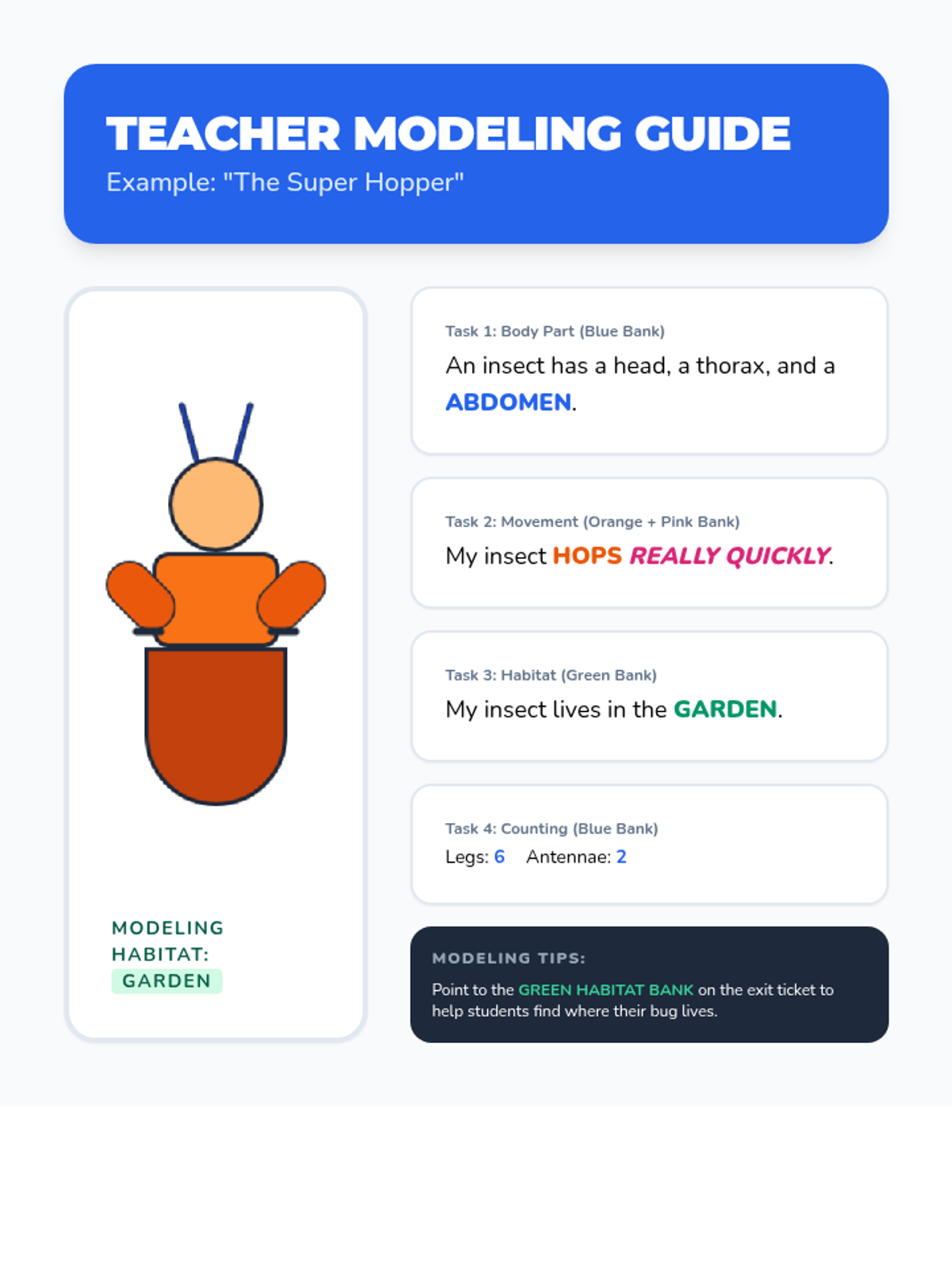 A fast-paced 30-minute lesson for Grade 2 ESL students to identify core insect characteristics through visual aids and a creative hands-on activity.